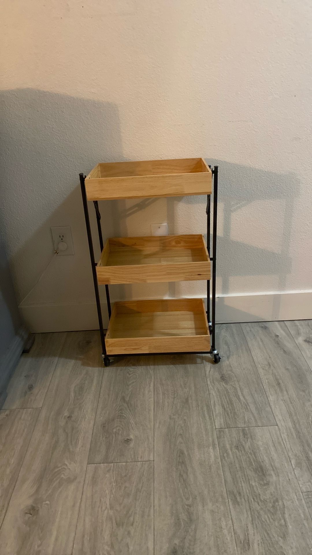 Brand new wood shelf with wheels. Paid $80 at homegoods