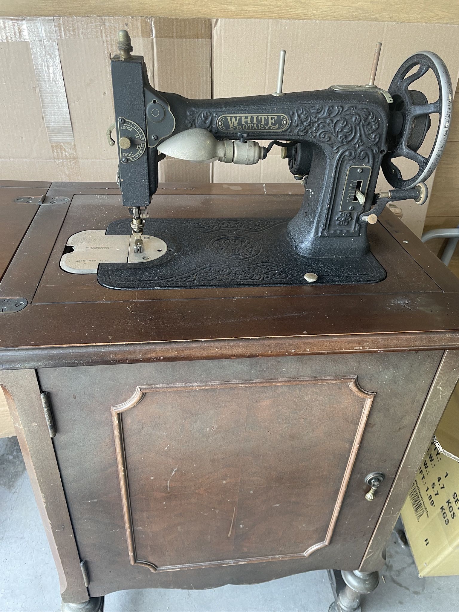 Collectible, Relic singer sewing machine. The wheel turns but I haven’t tried to sew anything.