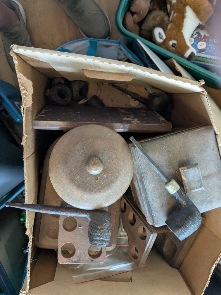 my dad stopped smoking pipes in 1974. this is all his pipes and stuff. I remember he would spend 50-100 dollars on each pipe. free to a good home. you might be able to make money selling them.