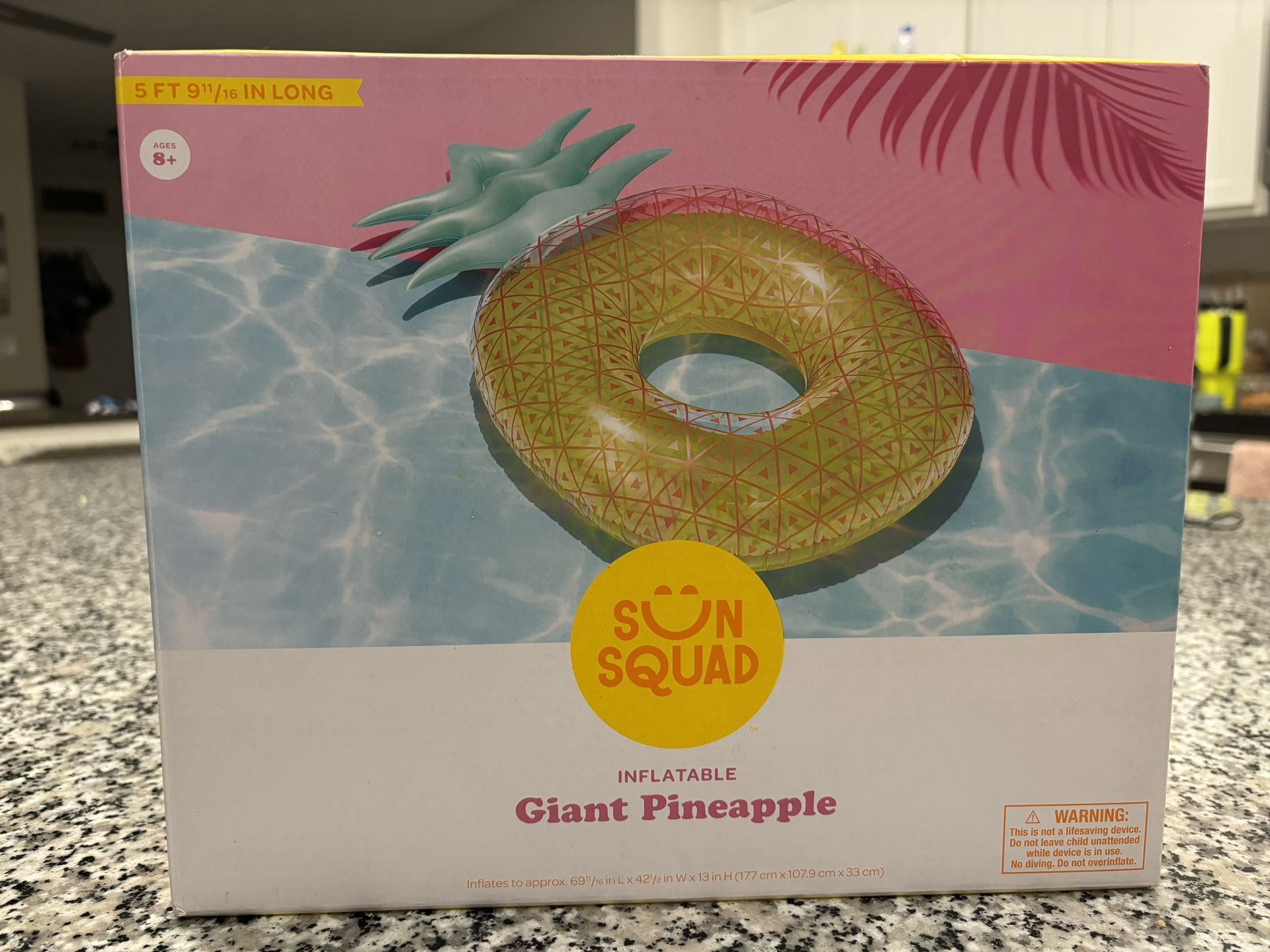 5ft 9in long giant pineapple float by Sun Squad. Brand new -unopened box