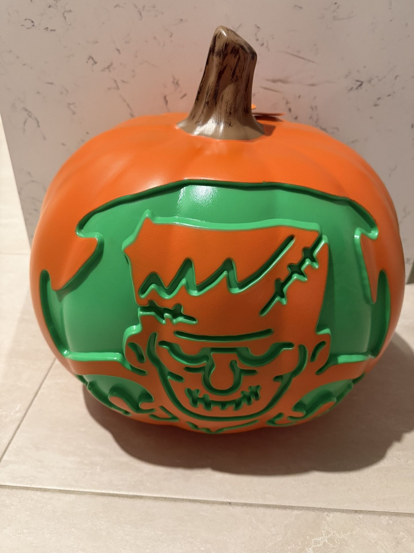 SERIOUS BUYERS ONLY, PLEASE!! NEW For Indoor/ Sheltered Outdoor Decoration Use - NOT A TOY • Theme: Halloween MONSTER PUMPKIN • Dimensions (Overall): 16.5 Inches (H) x 16.88 Inches (W) x 16 Inches (D) • Features: Lit, Timer • Battery 2: 3 “AA” Alkaline, Required, ((Not Included)) • Material: Polyethylene • Battery: 3 LR44 Alkaline, Optional, Included • Colors: Orange & Green PET & SMOKE FREE HOME PLEASE, View my page, click on "MY PROFILE PICTURE & scroll down" for more selling items, THANK YOU!!