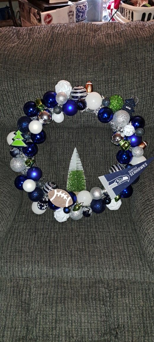 This wreath is home made with all brand new pieces and is designed with the Fandom & spirit of the HAWK NATIONs 12th man. Perfect for your door or a give away gift to a fellow Twelve. $50 bucks. GO HAWKS!!