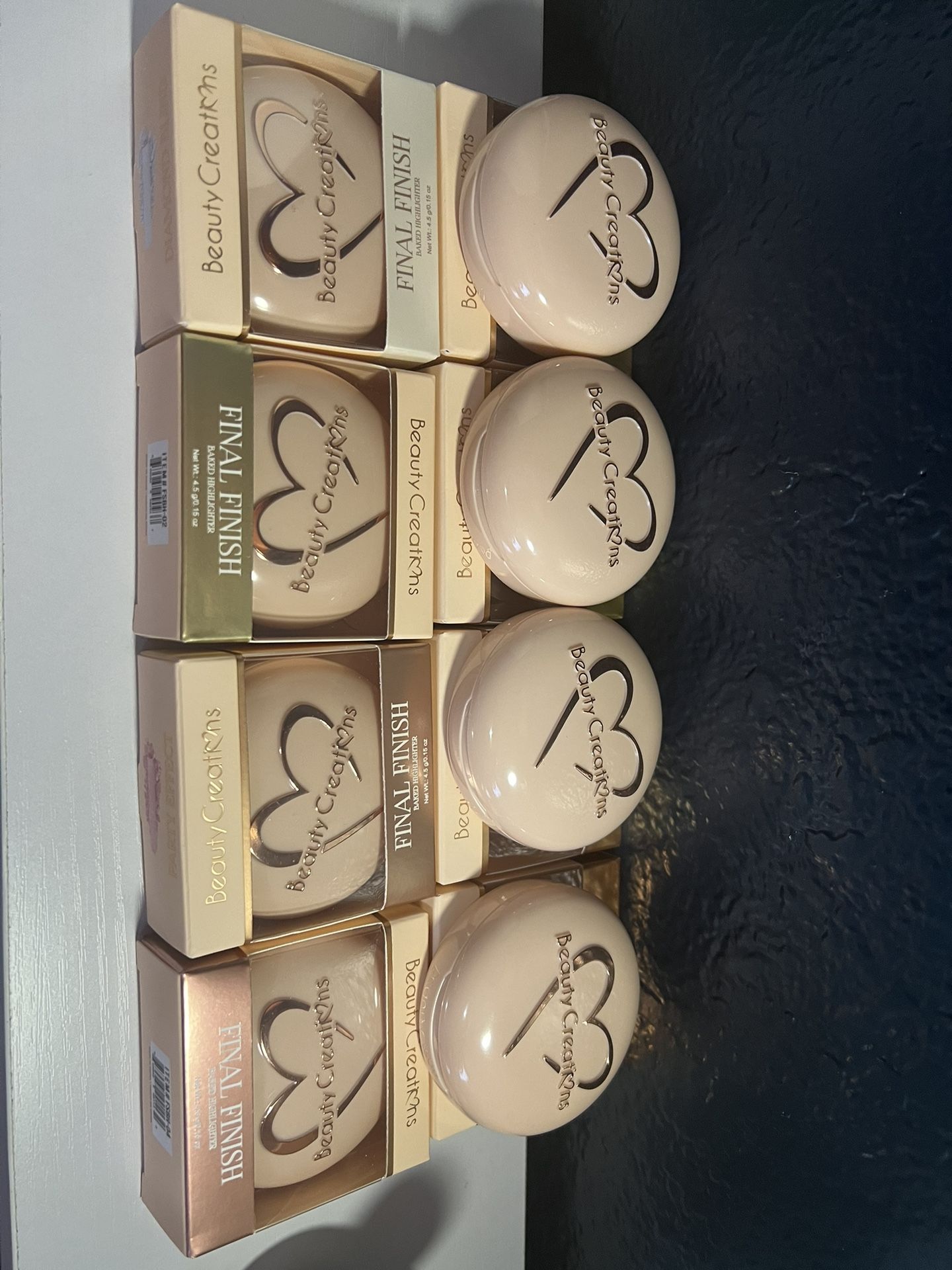 New beauty creations highlighter 8 different shades available $8 each Beauty creations blush 3 pieces set include brush,cream blush and powder blush $$15 Pick up in riverside by Tyler St