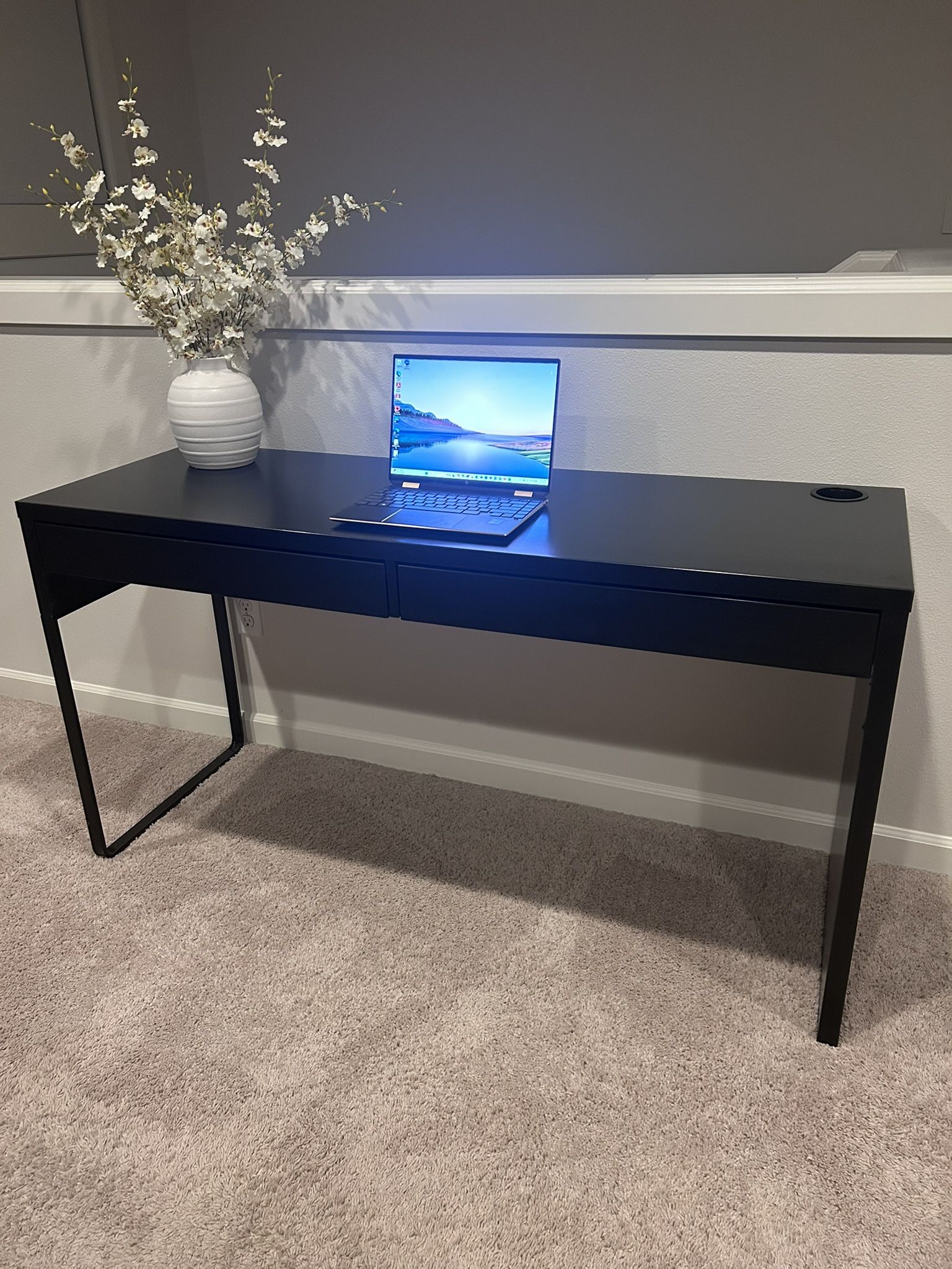 56 inches Long 29 inches Tall 20 inches wide Modern Dark Brown Desk – Great Condition! Sleek, sturdy dark brown desk with two drawers and a built-in cable hole. Perfect for a home office or study space. No damage, super clean, and barely used. Pickup in BOTHELL, WASHINGTON $185