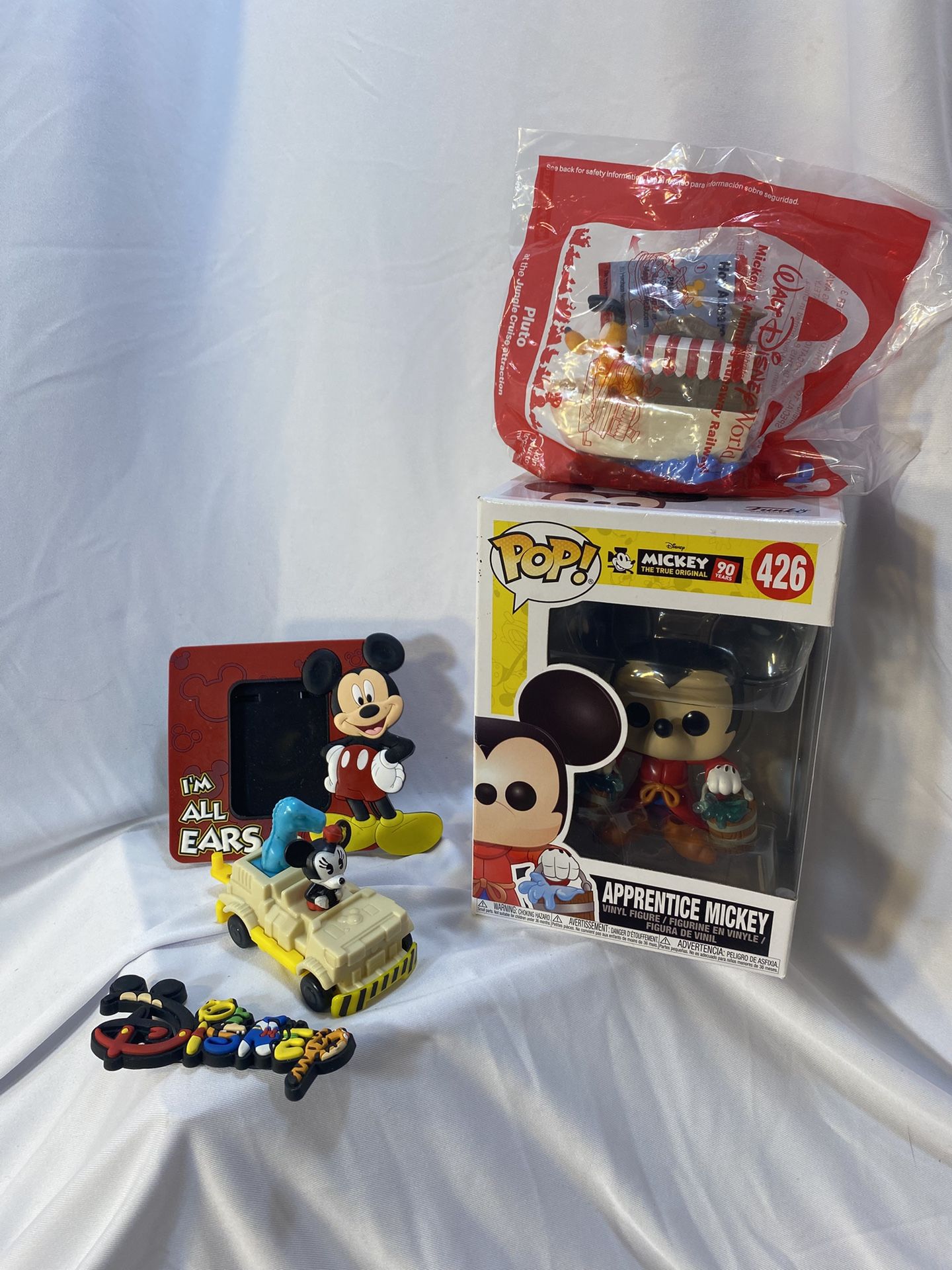 Unopened McDonald Disney toy Pluto, opened Minnie in keep, Fran that stands great and a cute magnet