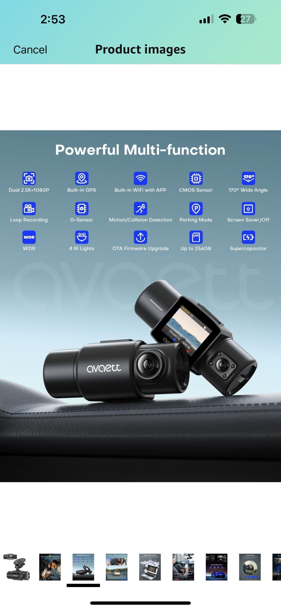Dual 2.5K Dash Cam Front and Inside, Built in WiFi GPS, Dashcams for Cars with Infrared Night Vision, Smart Dash Camera Supercapacitor Accident Record Parking Mode Avaett D60
