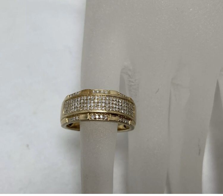 Selling a 10k solid gold ring from kays in excellent conditions . It has 130 diamonds Si2 G color at a 0.65 carat diamond weight .size 10 and weighs approx 7 grams Costed $1600 w tax Vendo anillo de hombre 130 diamantes 10 kilate oro sólido pesando 7 gramos Costó $1600