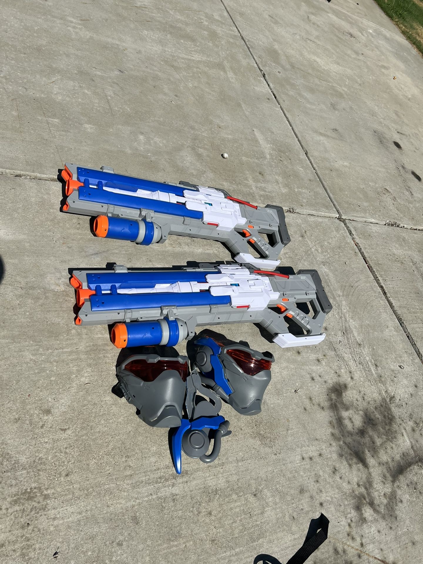 Great shape. Each gun was over $100. This set comes with original fave shields…shoots very fast. Guns are epitome of bringing out the big guns!! Price is $100 for ALL!