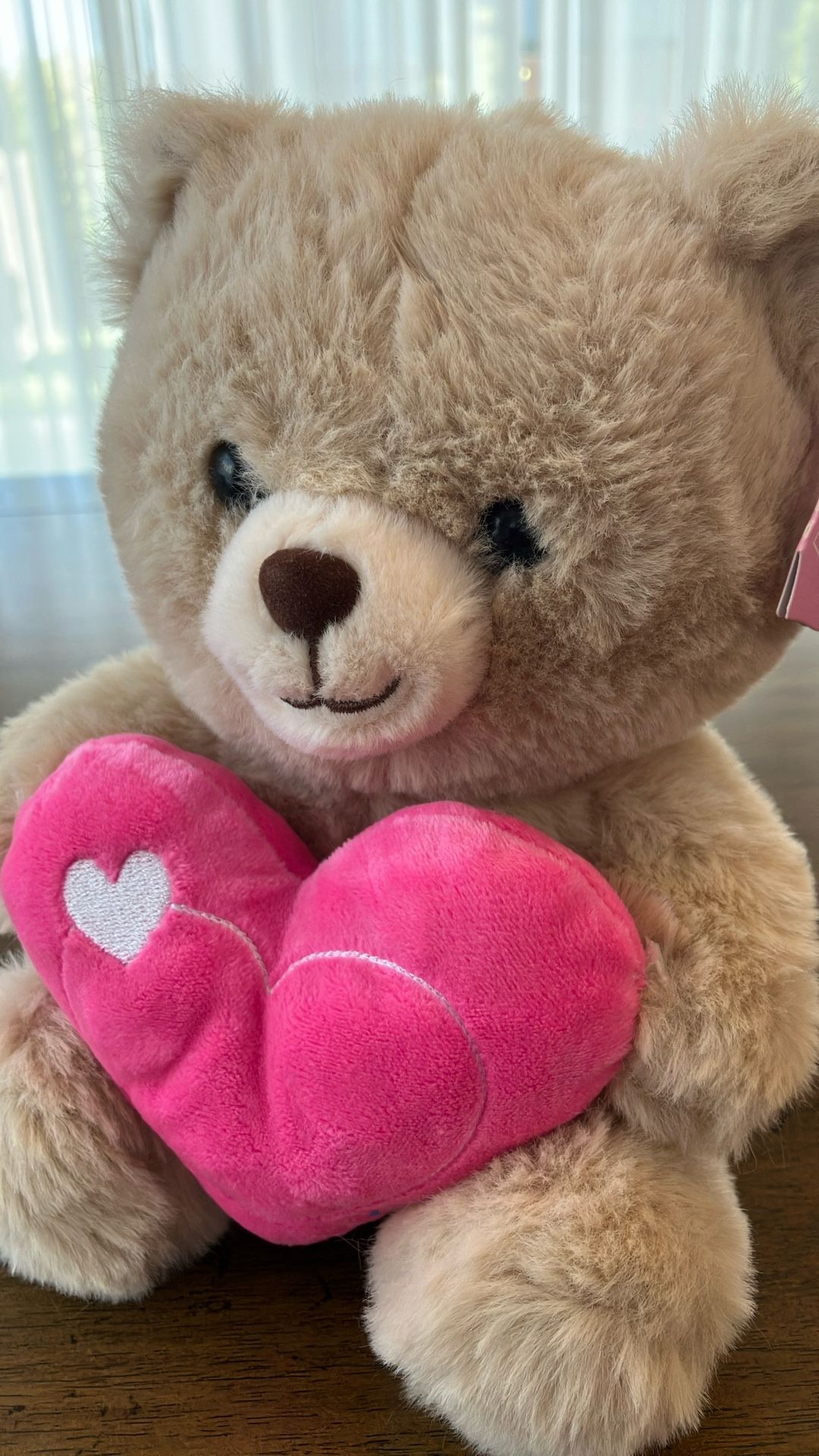 Product Features: • Ultra-Soft Fur: Features a fluffy, light tan/beige textured fur that is perfect for cuddling. • Sweet Design: The bear is holding a vibrant pink plush heart with a smaller white embroidered heart detail. • Friendly Face: Features dark eyes, a soft brown nose, and a charming stitched smile. • Versatile Gift: Ideal for Valentine’s Day, anniversaries, birthdays, or as a "get well soon" companion.