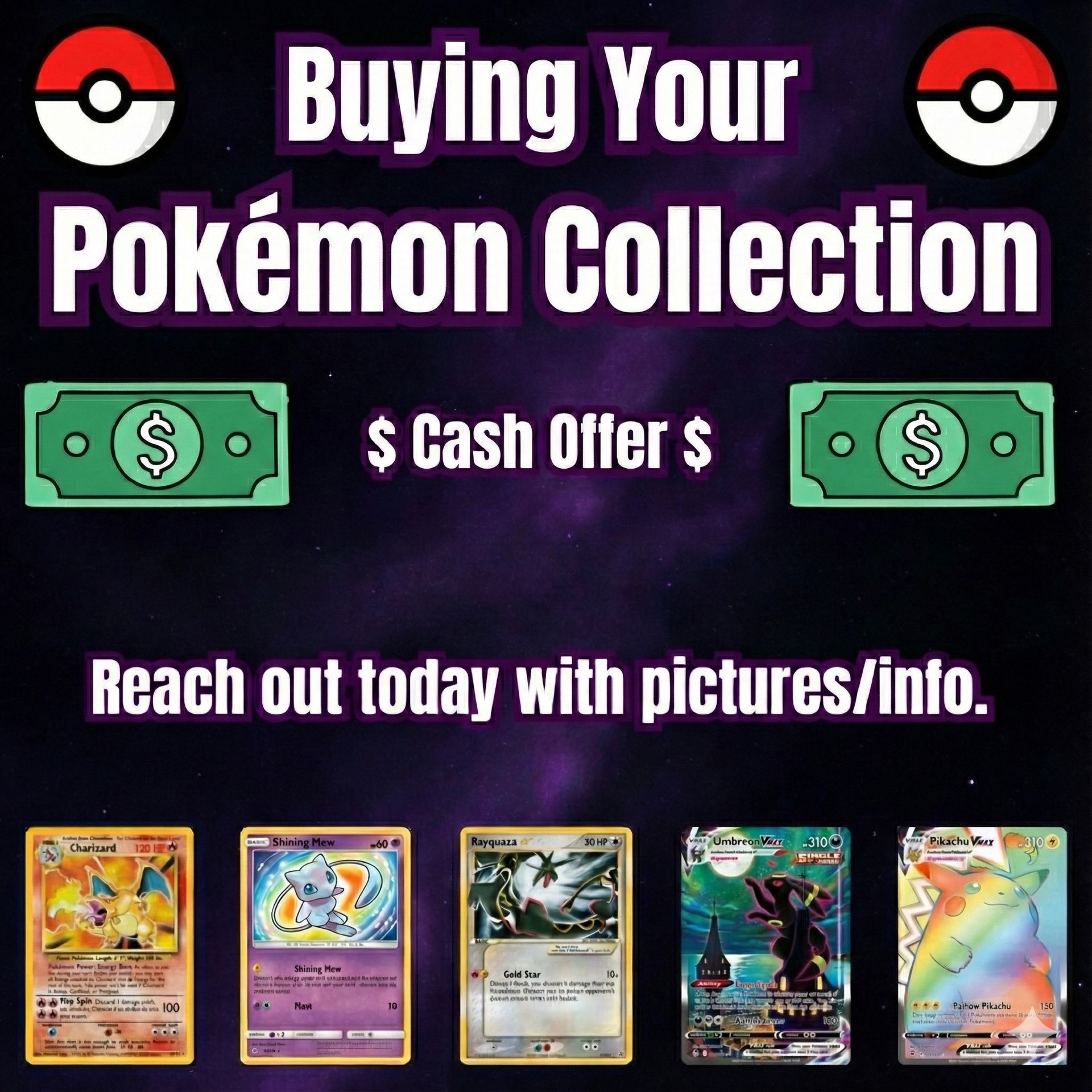 If you are interested in selling a Pokémon card collection locally, feel free to reach out with some details. Thank you for your time!