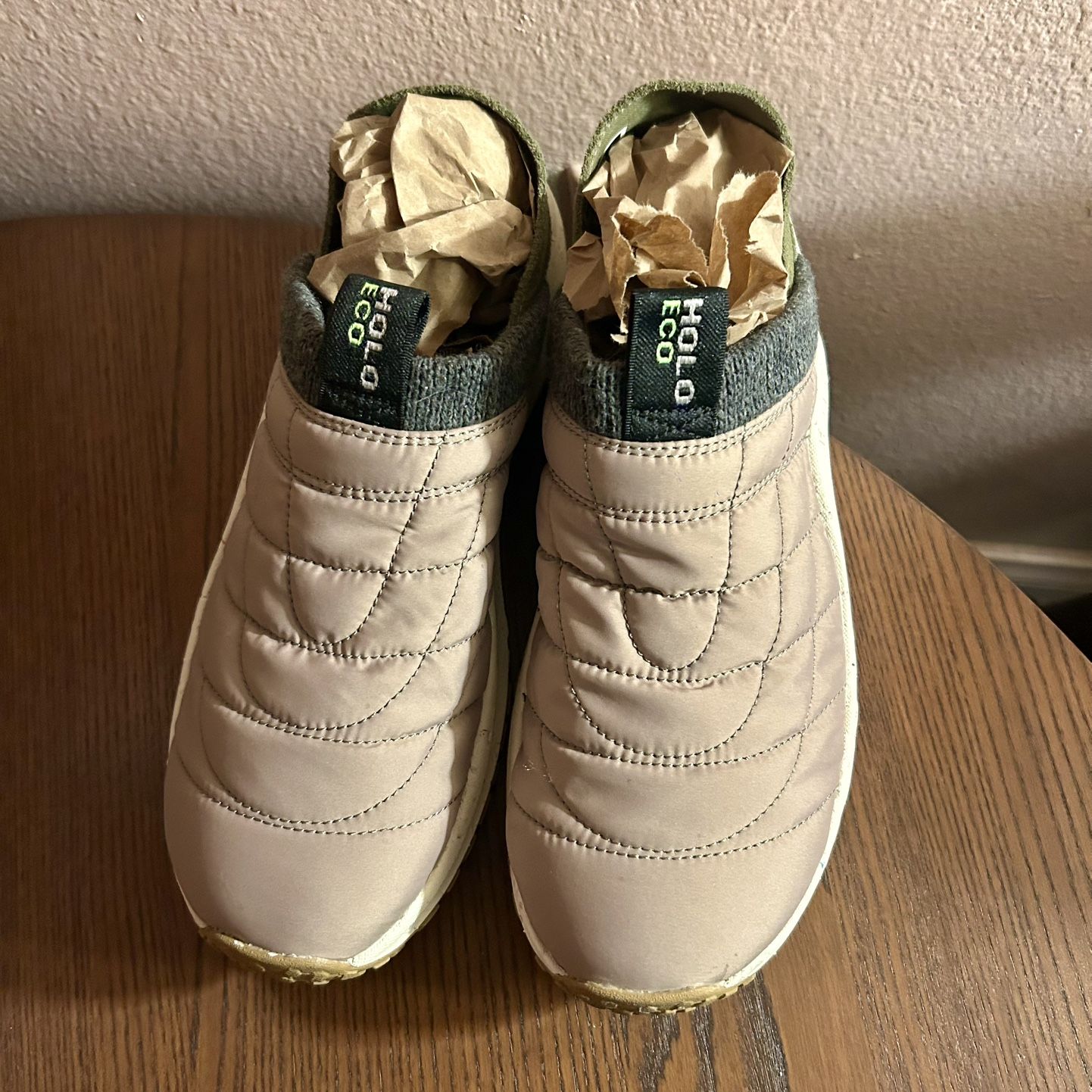 Condition: New, without tags, • Size: 9½ Eco-friendly materials: • Upper: 100% recycled quilted nylon with recycled wool collar and eco suede heel • Lining: Recycled mesh • Insole: 100% recycled antibacterial Polylite foam • Midsole: 100% recycled EVA with nylon shank for stability • Outsole: 100% recycled rubber traction sole Comfortable, sustainable shoes—perfect for anyone looking for style and eco-friendly footwear.