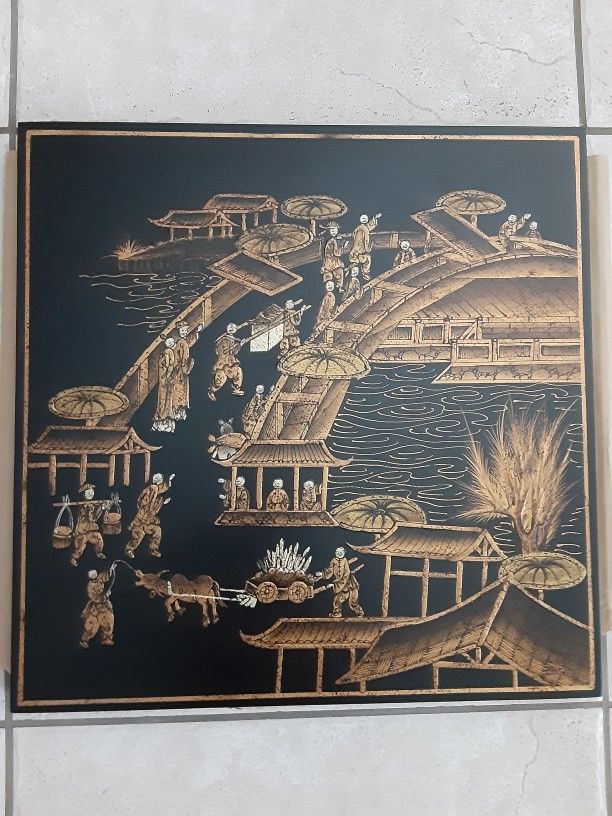 Hand made hand painted and carved. A Solid Wood Wall Picture 17inch x 17inch. It was $46. Now mark down $37 . Made in China. Company closed. Collectible ( heavy duty).
