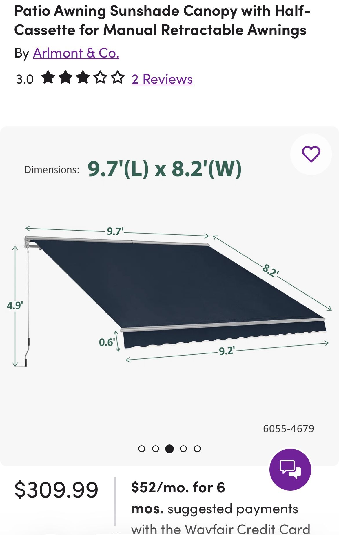 Large Patio Retractable Awning β Sunshade Canopy π Selling a large patio awning (Arlmont & Co.) in good condition. NEVER USED β Manual retractable design β Great for shade over patio, deck, or backyard β Large size: approx. 9.7 ft x 8.2 ft β Helps keep outdoor space cool Originally over $300 β selling cheap! π² $80 OBO π Pickup only β‘ Priced to sell β first come, first served! Message me if interested π