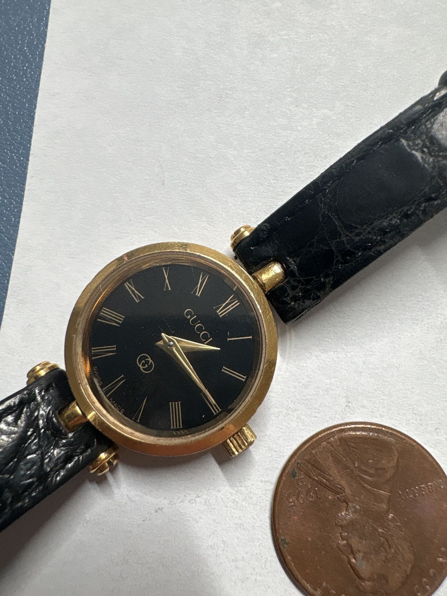 I have a running Gucci 1980s watch. It is in good shape, is missing a pin cover that can be replaced for around $10-$20 tops. It is lightly worn for sure but other than that everything else about it is good. The band for it is not an original band and has been replaced at some point.