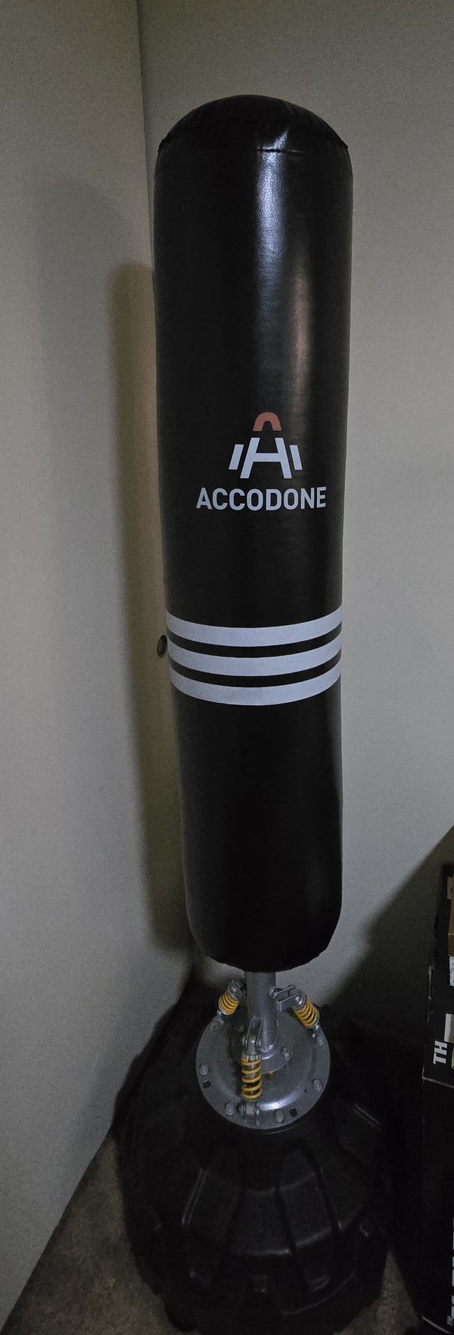 Barely used punching bag with brand new boxing gloves.