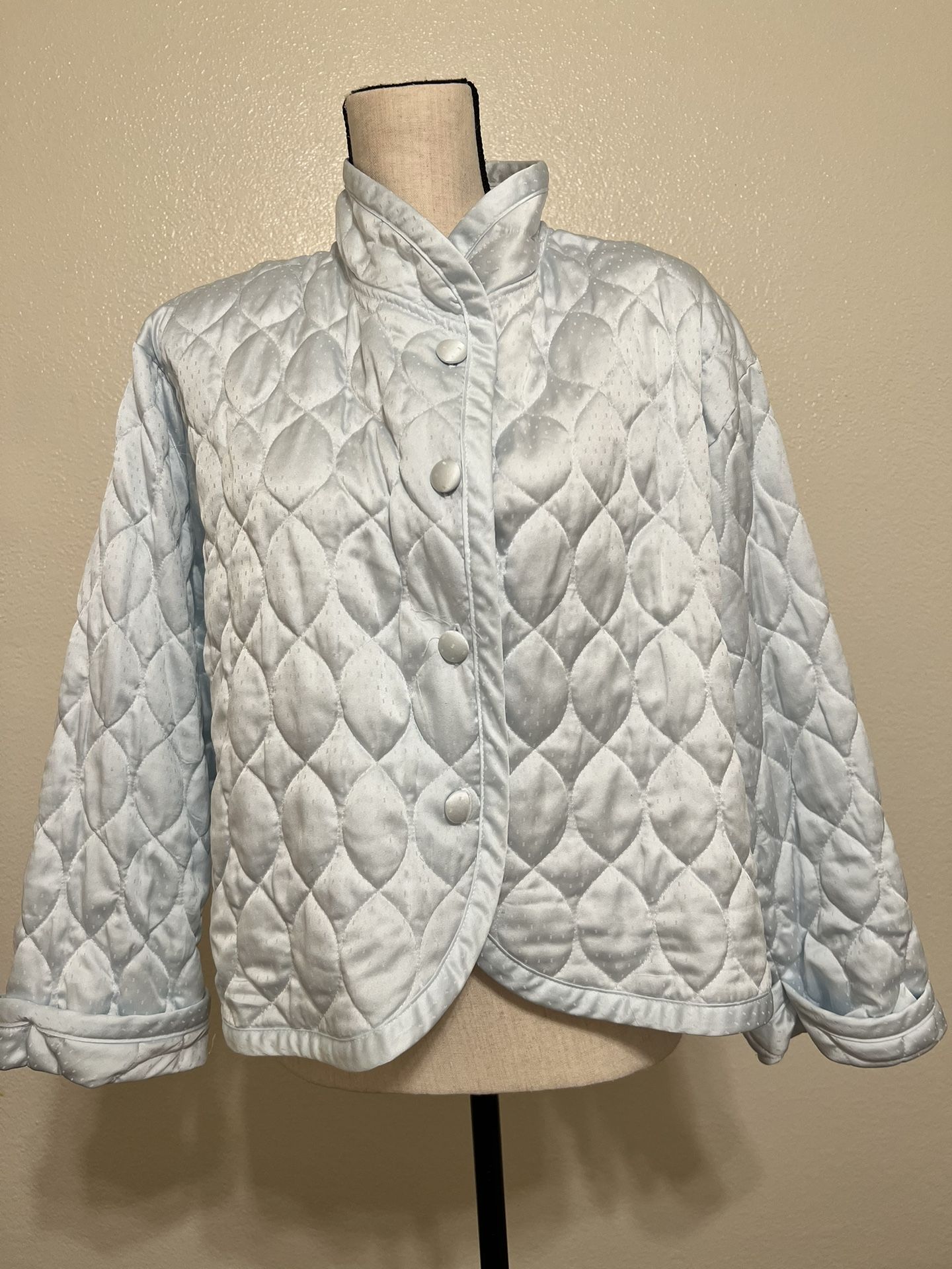 Miss Elaine Quilted VTG Light Blue Bed Jacket - Large