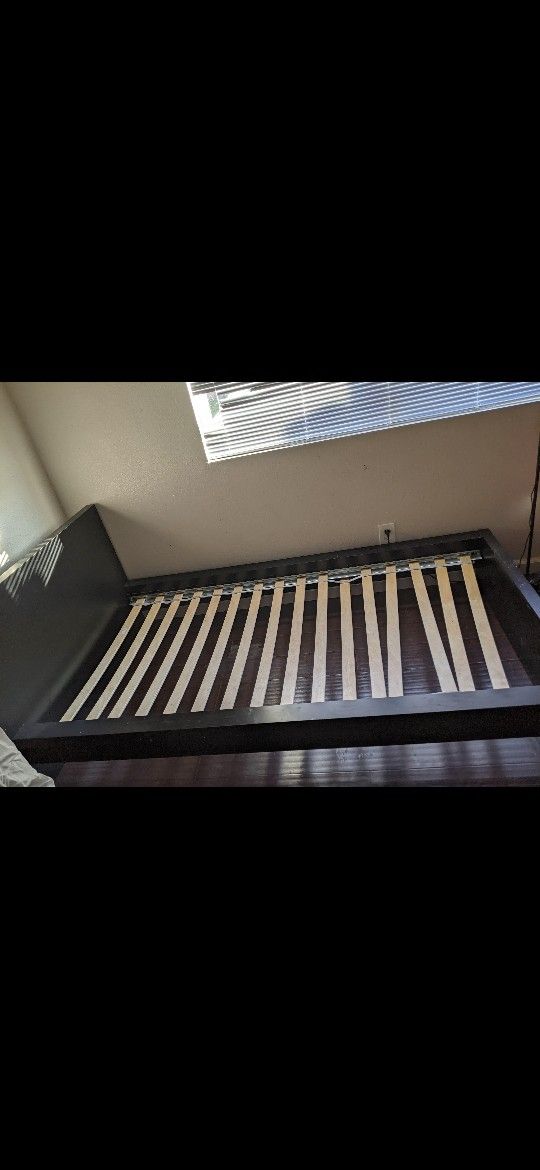My son upgraded his bed frame!! All black TWIN FRAME $100 or best offer. Been in the garage for a while, need to find screws still (will be discounted if unable to find)