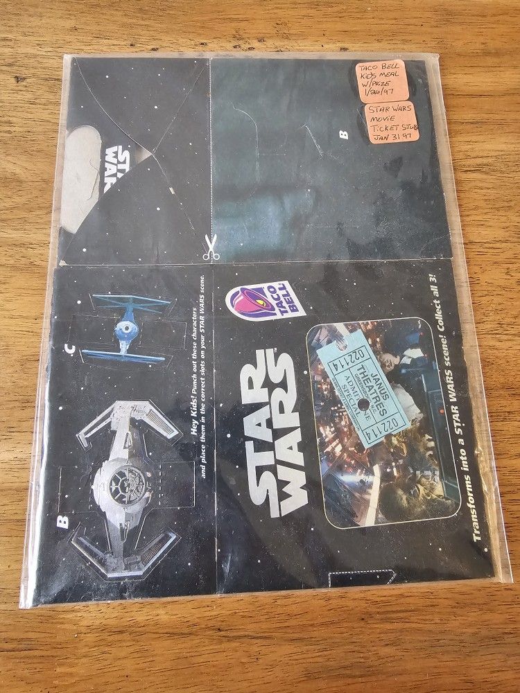Old Tacobell promotion for starwars. Includes movie stub Firm on price.