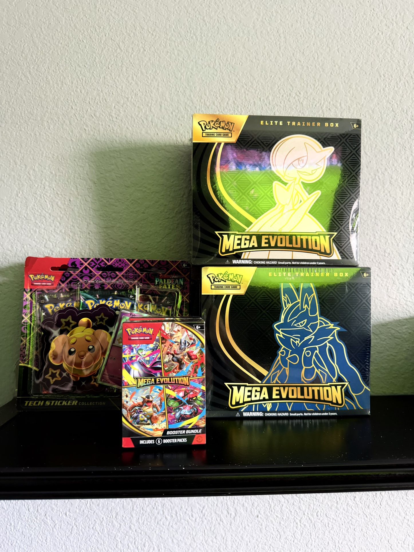 Got items for sale 2x Mega Evolution ETB [Mega Lucario] $86 each (2 left) 4x Mega Evolution ETB [Mega Gardevoir] $81 each 2x Mega Evolution Booster Bundle $48 each (1 left) 3x Paldean Fates Tech Sticker Collection $33 each ❌SOLD❌ Prices can change depending on the market Not in a rush to sell Lowballers will be ignored Prices are for pick up in Oakland only Zelle/Cash