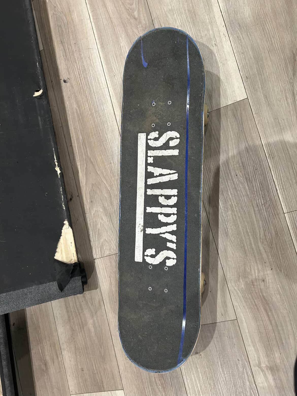 Size 8.5 Deck is whooped but the trucks, bearings & wheels hood Independent trucks Powell wheels Bone red speed bearings