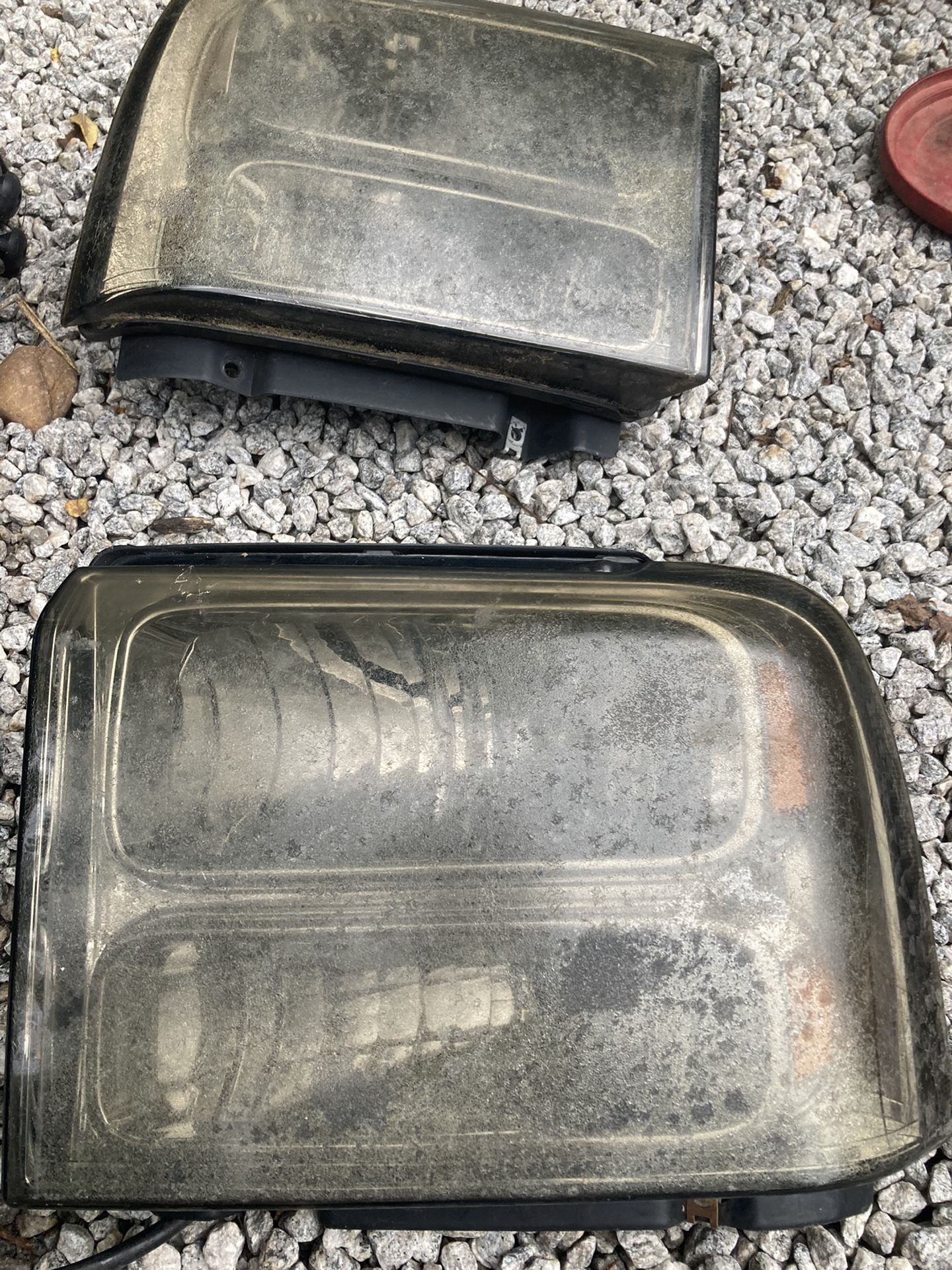 Used F250 headlights. Smoked out aftermarket lenses, worn condition.