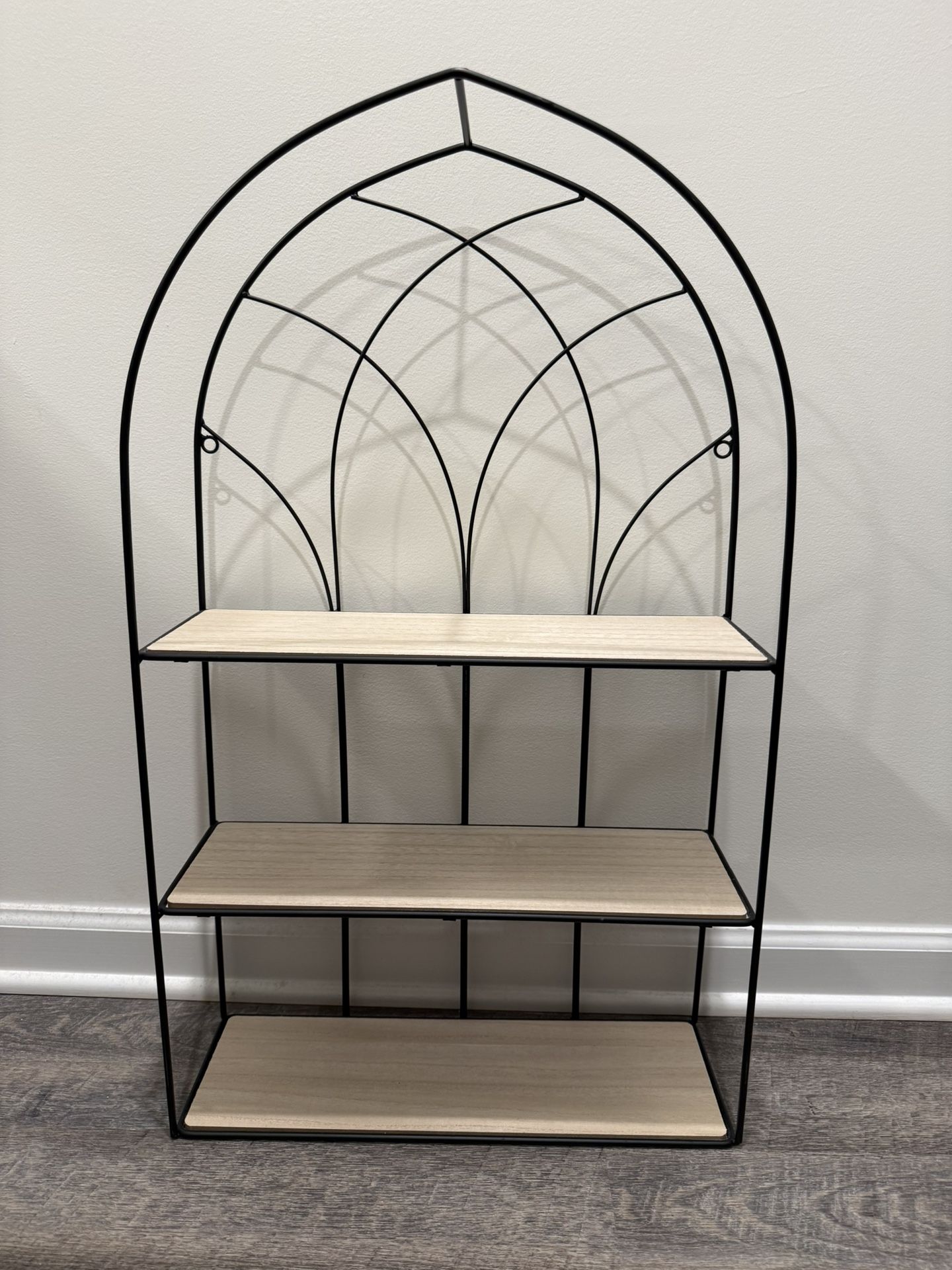 Cathedral Metal/Wood Hanging Wall Shelf (30” Tall)
