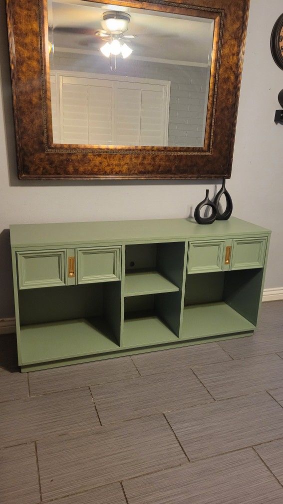 BEAUTIFUL GREEN WITH GOLD HANDLES TV STAND