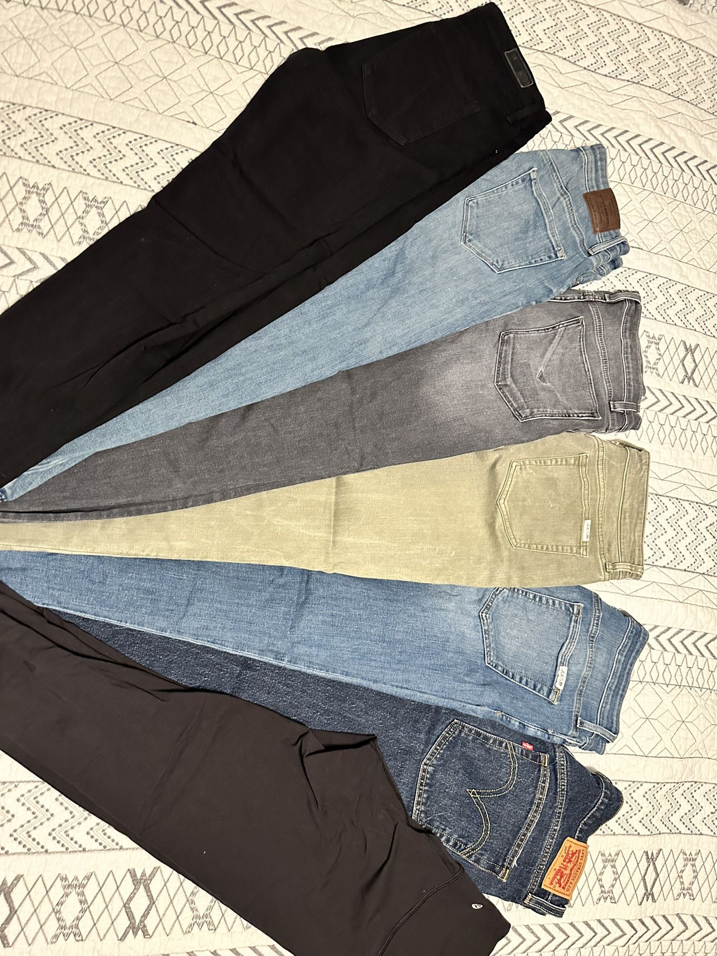 Just lowered price!!! Sold as a bundle. This is a crazy deal for this many designer jeans!!! 6 pairs of designer jeans plus a pair of black Lululemon leggings. Get them quick this is a killer deal for these brands!! Items include these jeans in amazing condition!!!! Perfect for women’s size 6 or 8. Levi’s jeans 31x32 Joes jeans button fly blue - 29 Joe’s jeans green - 30 Grey Hudson jeans - 29 Lucky jeans 8 / 29 Black AG jeans -29 R Black Lululemon leggings. No tag but they are size 8. (Only wore these once!!)