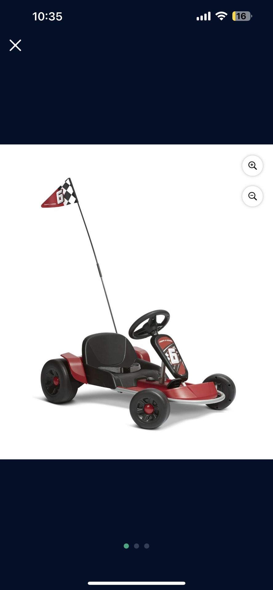 Pick up near Othello Station. Brand NEW SEALED BOX. The Radio Flyer 12V Turbo Go-Kart is a battery-powered riding toy designed for kids aged 3-7 years old, with a maximum weight capacity of 69 Ibs. It features two forward speed settings (2.5 and 5 MPH) and single speed reverse, along with automatic braking for safety. The go-kart has a sturdy steel frame, seat belt, and high-visibility racing flag to ensure a safe riding experience. The 12V battery can be easily recharged through the rear charge port, which has a debris cover to prevent damage. This unisex go-kart is suitable for all kids and comes with a 12V battery and charger included.