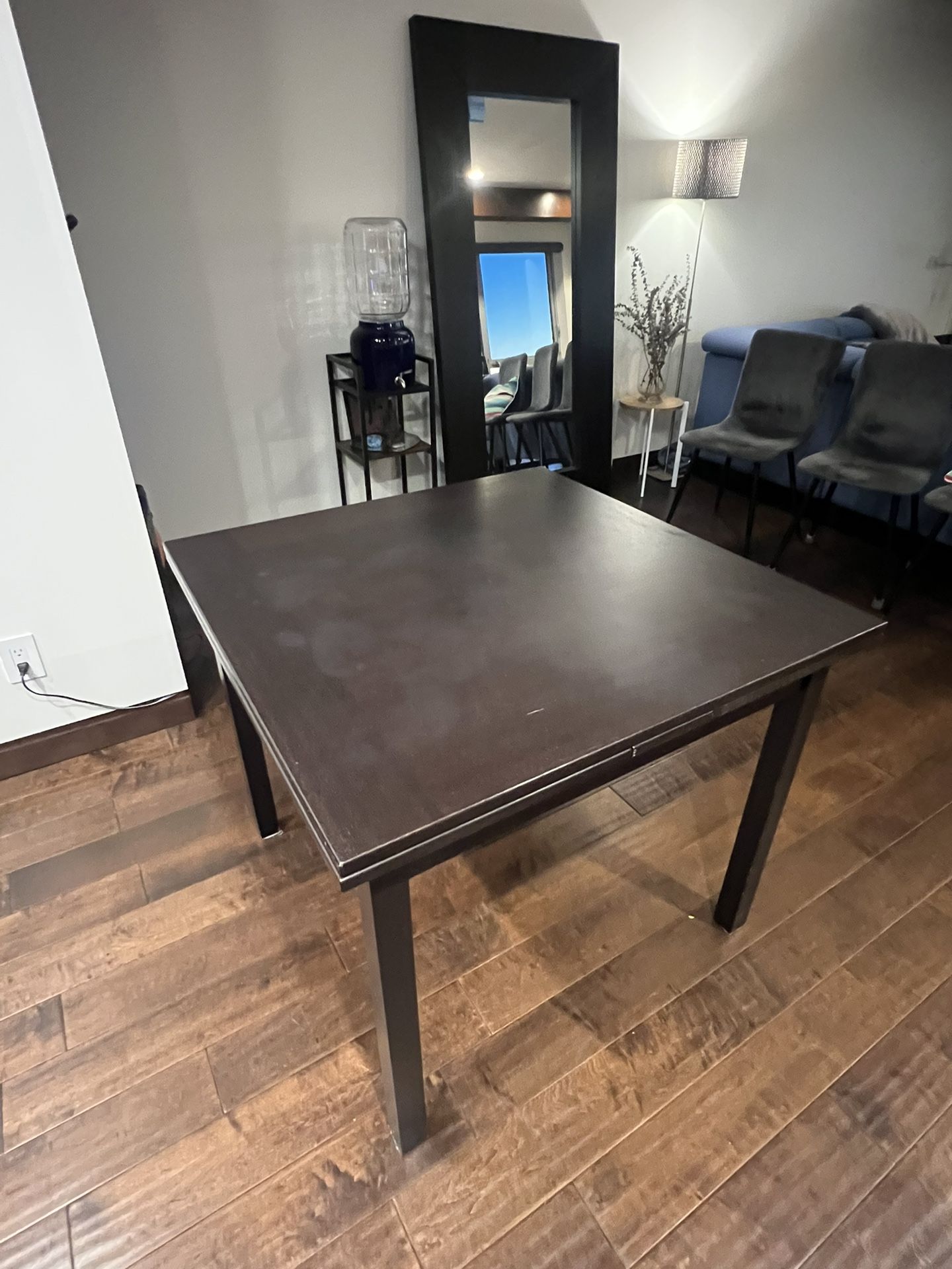 Curb Alert - Pick up between 609-610 Sleepy Hollow Lane in Laguna Beach. Dark Brown Dining Table that extends to a larger table when needed. Regular square seats about four people and dimensions are: 35.5" Long X 35.5" Deep X 30.25" high (standard height.) When expanded, table can seat 6-8 and is 65.5" long by 35.5" Deep X 30.25" high. Video shows how easy it is to expand the table to the larger size. Table top could use a refresh, but still very useable. If this ad is up, it's still available. Pick up in Laguna Beach. Thanks!