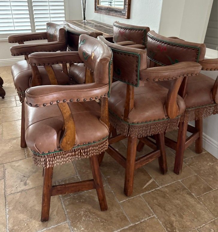 Set of 6 Artisan Western Swivel Bar Stools
