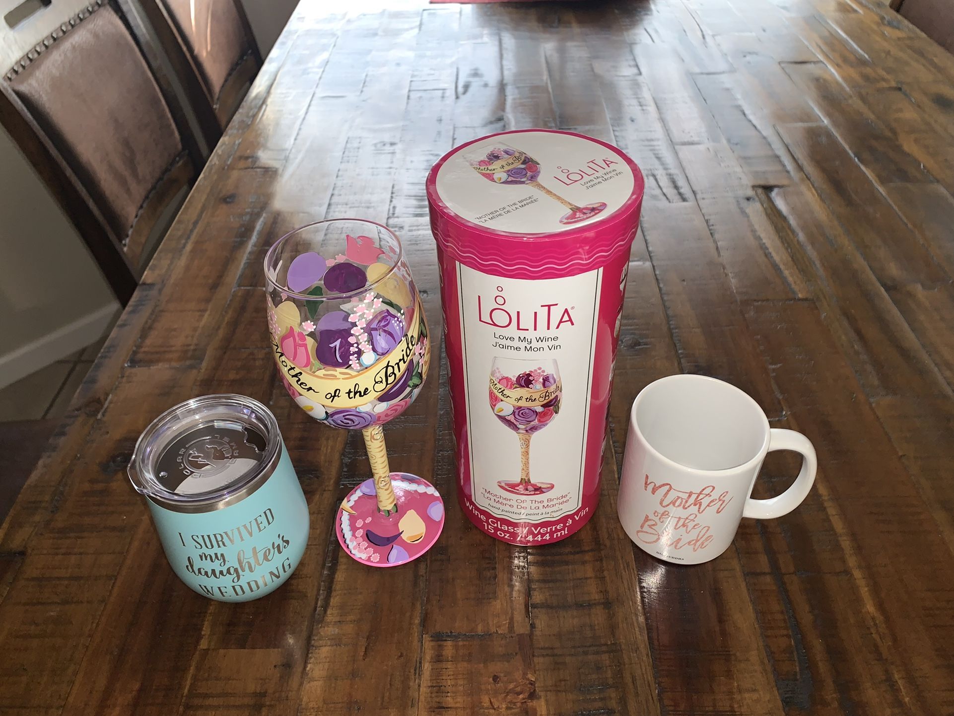 Selling all 3 together, all in great condition, no chips. Lolita wine glass is 15oz. Mint stemless tumbler is 12oz. Not sure of coffee cup size. All pre-owned.