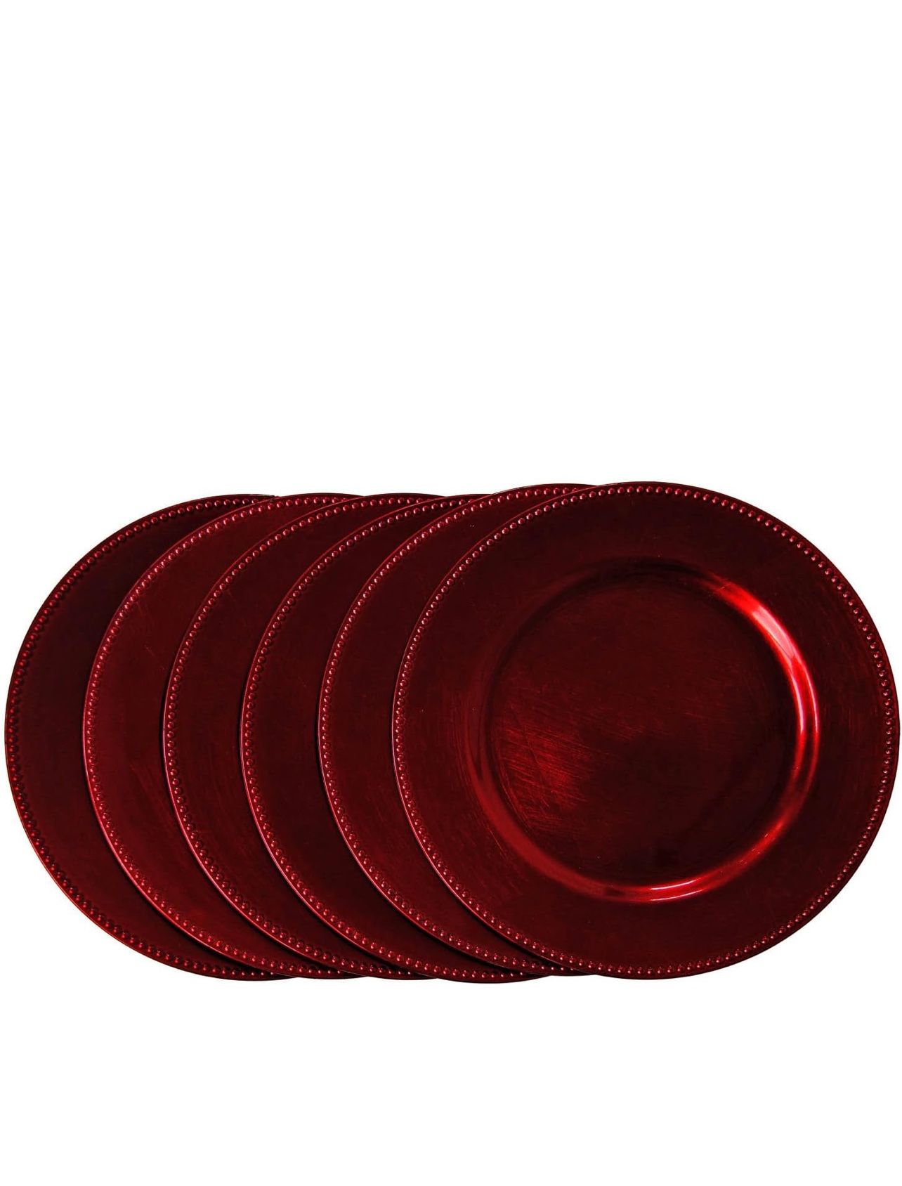 Burgundy Plastic Beaded Charger Plates 12 Pcs 13 Inch