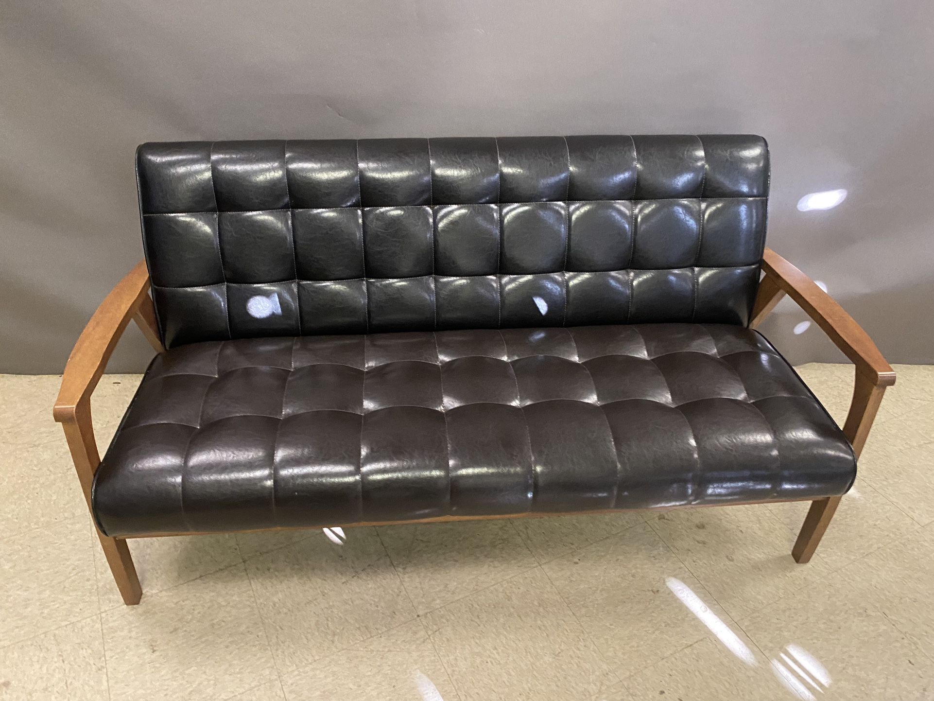 Sleek Faux Leather Couch 5’x6” long 2’x7” tall only used for display never used this for sitting.