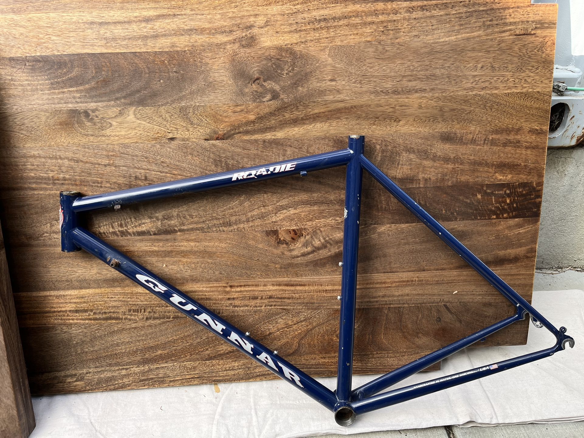 Selling a Gunnar Roadie steel road frame in 52cm. Classic navy blue color with plenty of character—there’s visible rust and paint chips throughout (no visible dings or dents), but the frame is solid and rides great once built up. Perfect for a restomod Details: Size: 52cm CTC measurements: Head tube - 10.8cm Top tube - 52.0cm Seat tube - 48.2cm Down tube - 61.0cm Material: Steel (Waterford-built quality) Color: Navy Blue Headtube: 1" (takes a threaded or threadless 1" fork) Condition: Used, with cosmetic rust and paint chips; no known structural issues Year: Not sure—Gunnar didn’t change the Roadie much over the years, so it’s hard to pin down without a serial lookup Perfect for a restoration project, single-speed conversion, or anyone wanting a high-quality steel frame on a budget. Pickup only. Cash preferred.