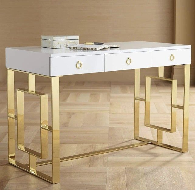 GLAM WHITE GOLD HOME OFFICE WRITING COMPUTER DESK CONSOLE TABLE VANITY - ESCRITORIO MESA
