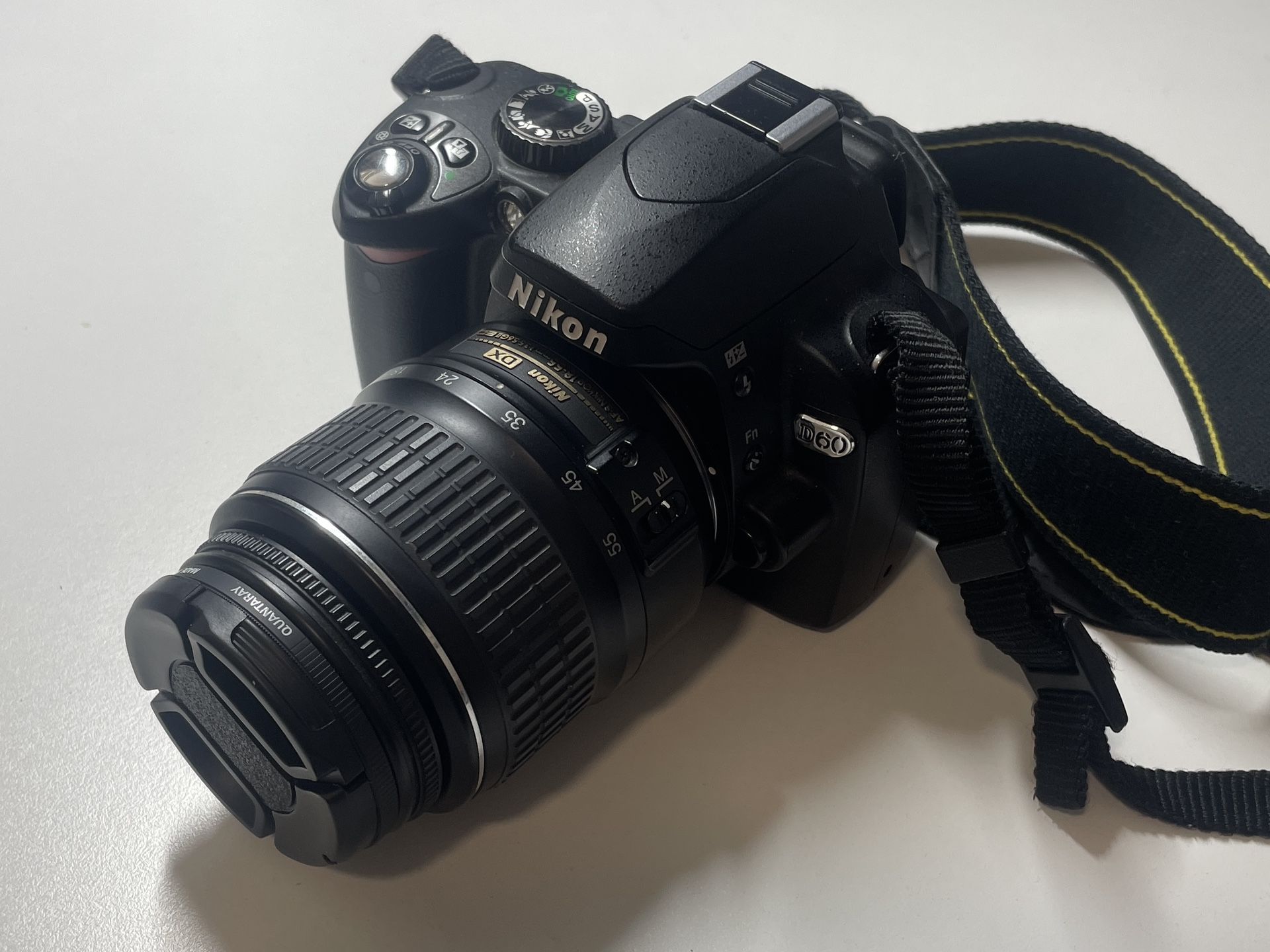 Nikon D60, I am the only owner. It is in great condition and comes with the 18-55mm lens. I have an 18-140mm lens for it that I can throw in for an additional $80. I bought this lens new and it is still in great condition. I also have a lot of other gear for this camera (batteries, lens filters, etc) listed on my profile. Hmu with offers or trades.