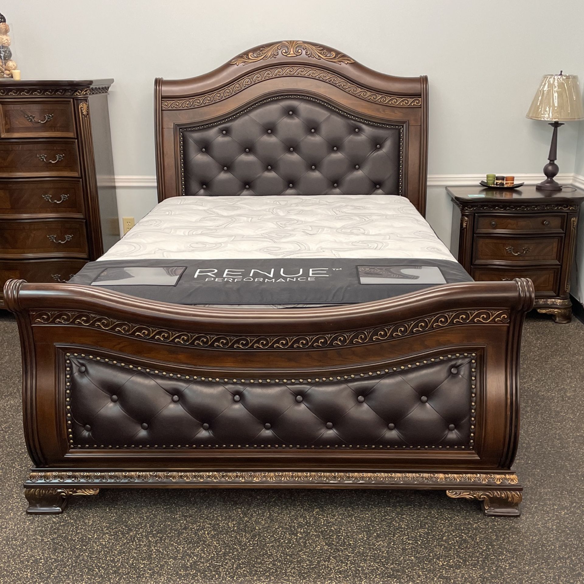 Queen set of 5 piece that includes: Bed, dresser, chest, night stand and mirror. Extremely nice piece too many details… come and see in person. Brotherly Furniture Burien