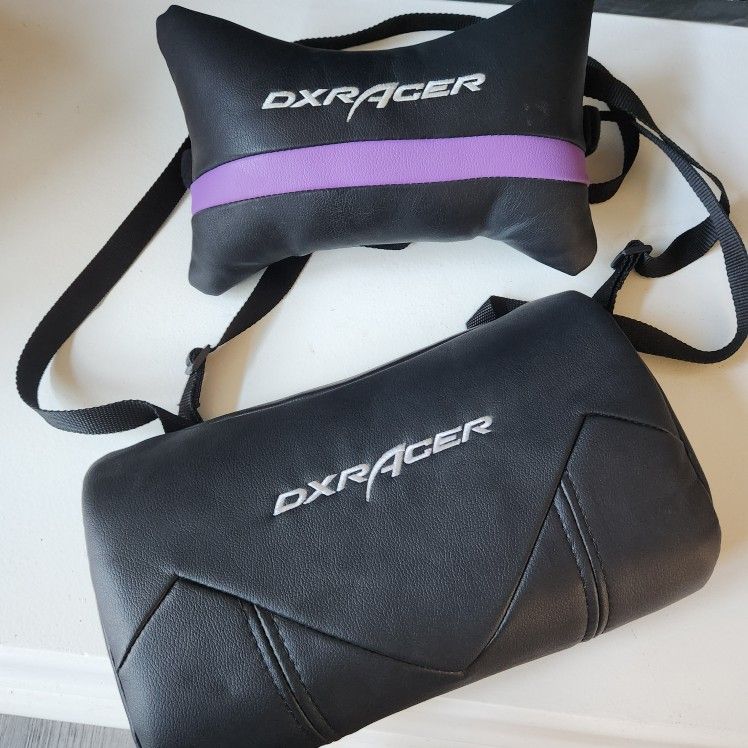 Head and lumbar support cushions for office chair, computer chair, gamer chair etc. Excellent condition. Black/purple.