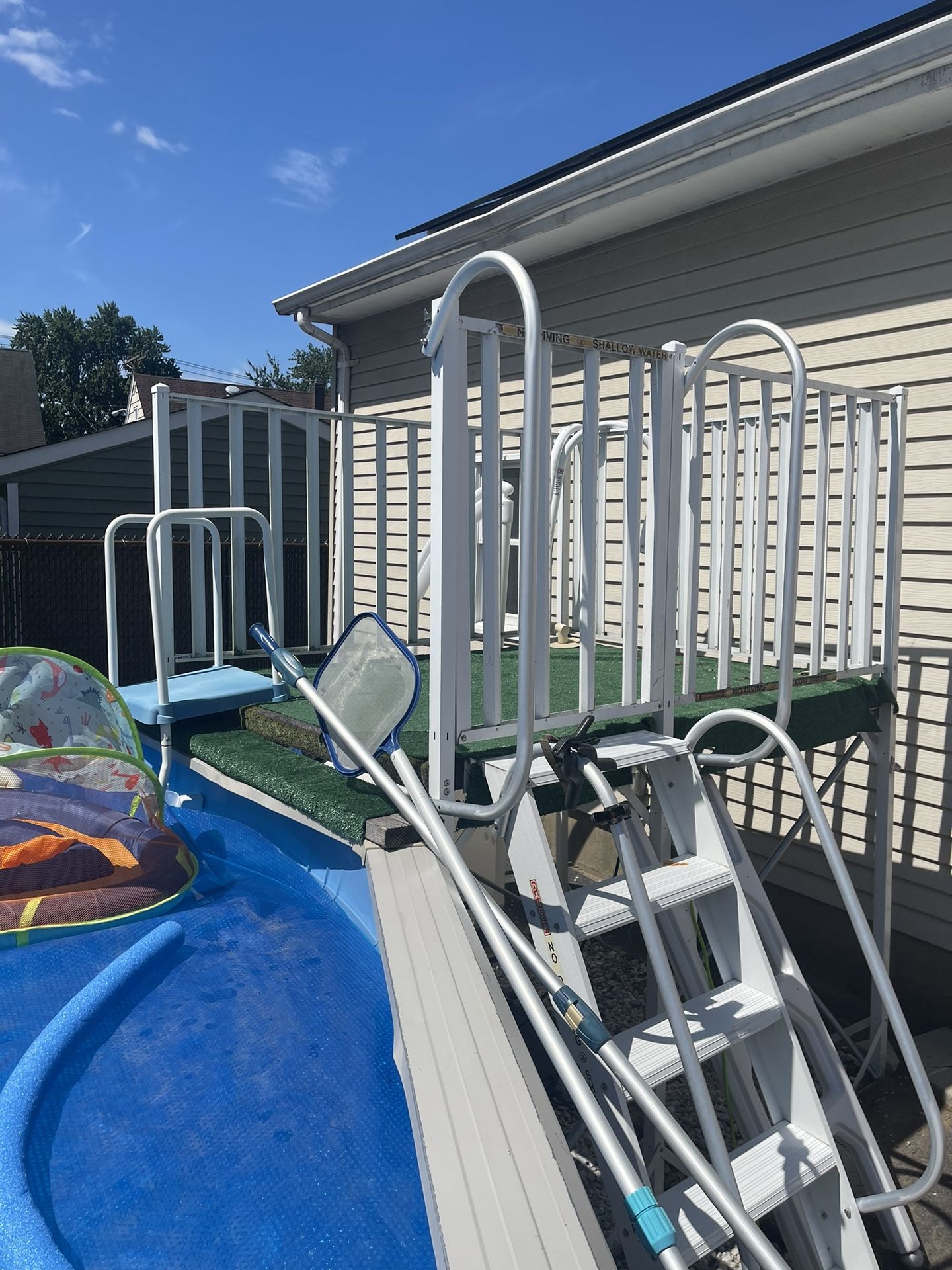 very reliable kids will enjoy steps that go inside pool not included only owned for 2 years