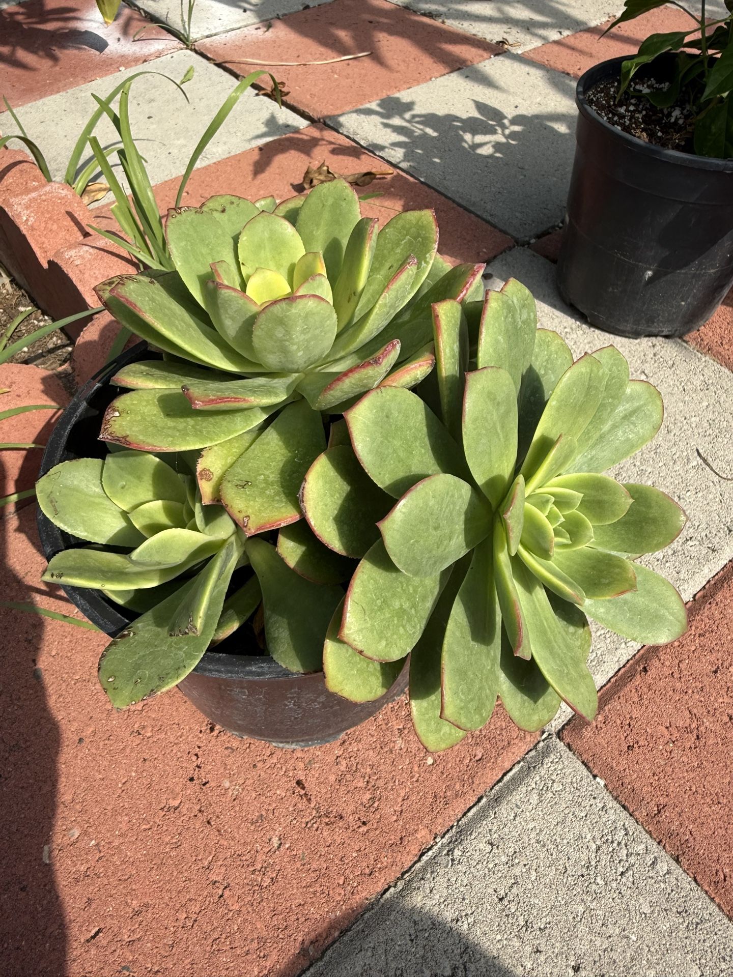 It is a tricolor, variegated rosette of green and yellow with hot pink margins, when grown in bright sun. It makes a very attractive and showy