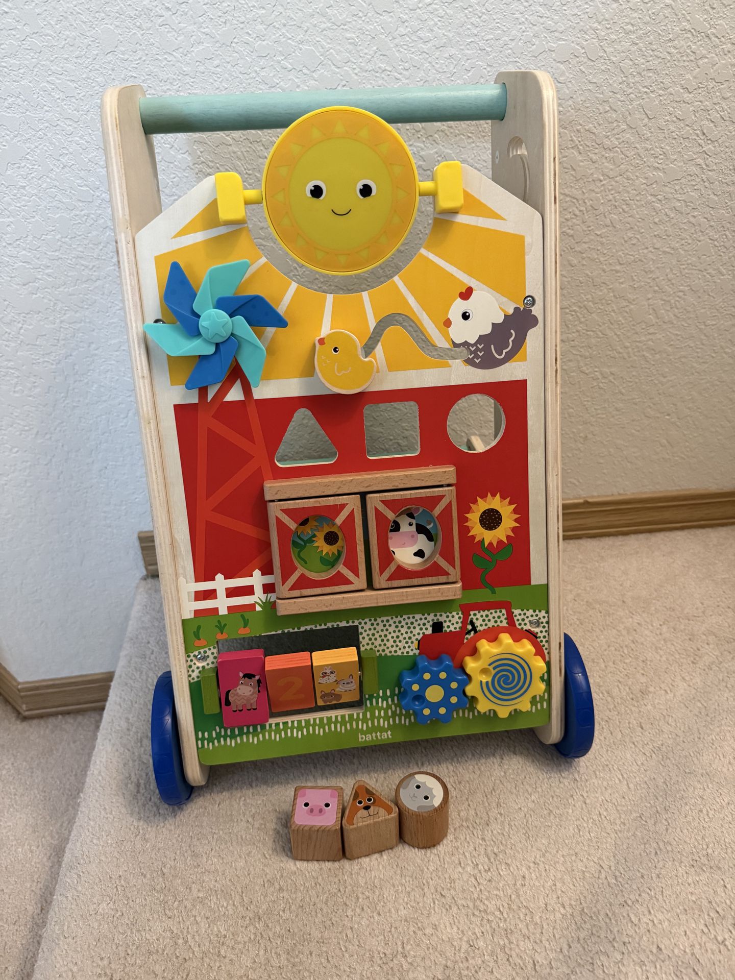 Wooden baby walker with all pieces. Excellent condition. Smoke free home.