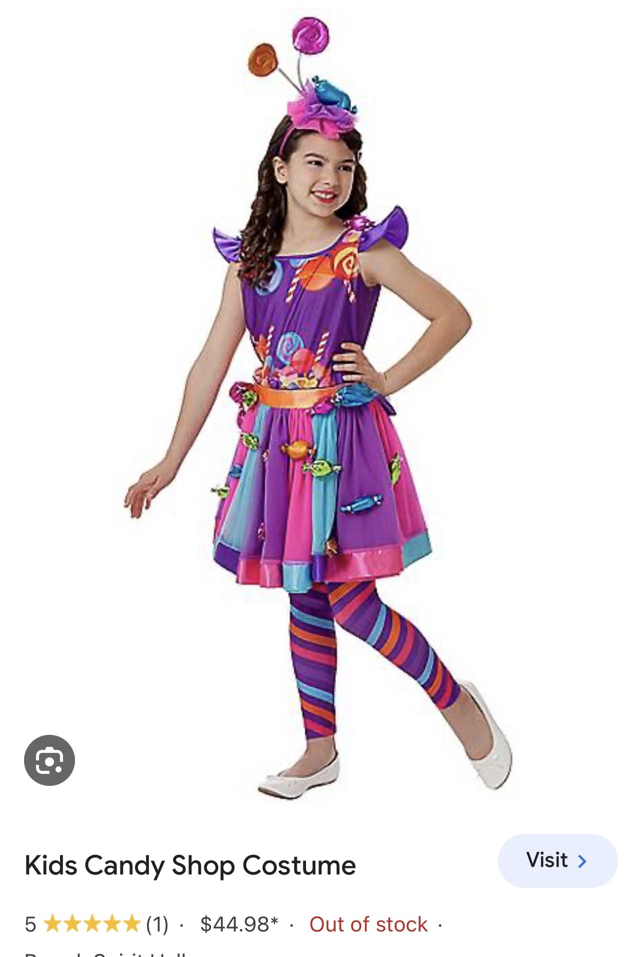 Kids Candy Shop Costume Dress and leggings included, headband included is not the original but candy themed Smoke free home Size small (4-6) If your little one has a sweet tooth, and the sweetest personality to match, then they’re going to love dressing up in this adorable Candy Shop costume! This vibrant blue, pink, and purple dress features colorful candy accents, along with a matching headband and striped leggings. No matter where you go, your little candy shop kid is sure to have the sweetest costume around!