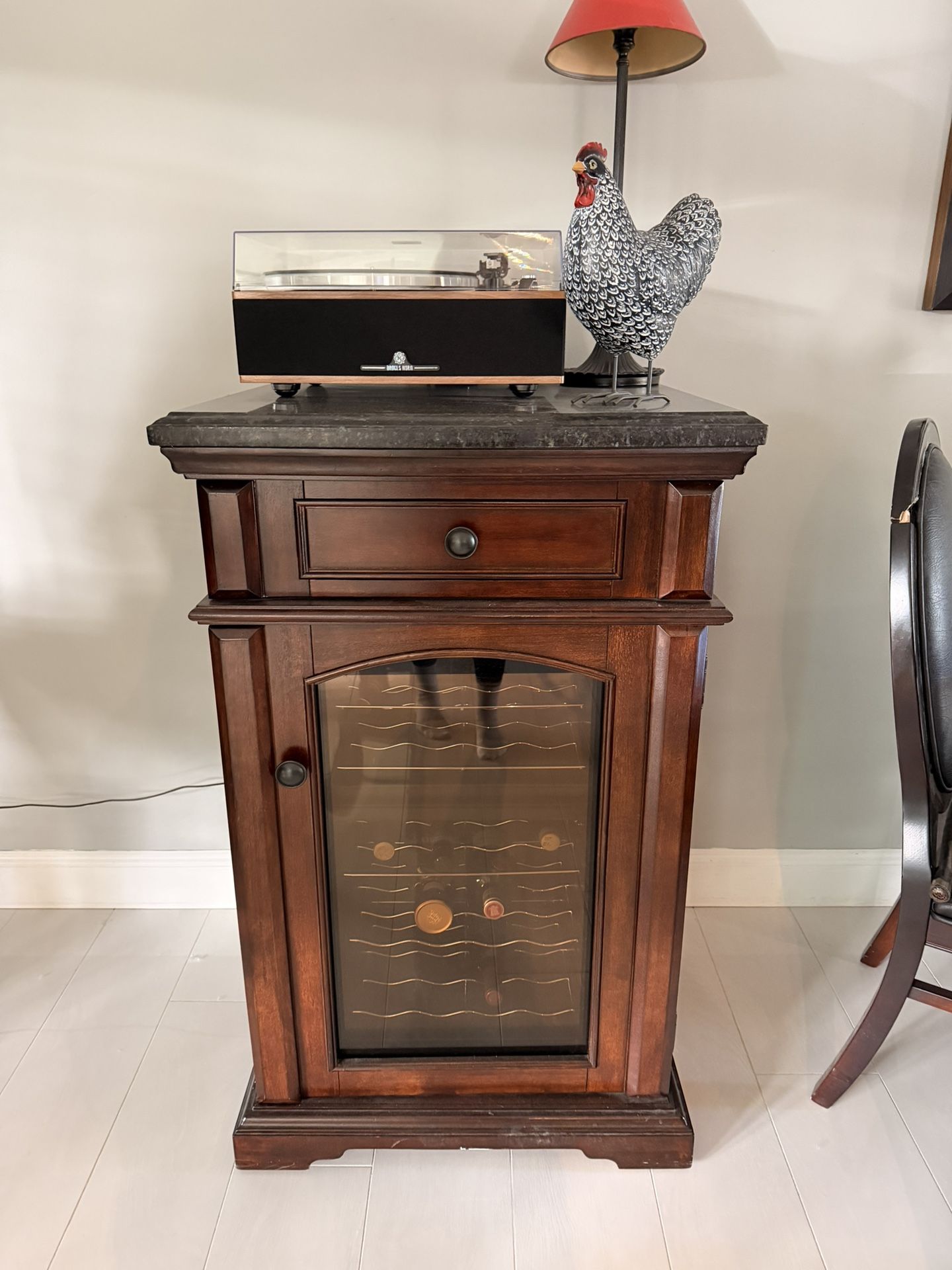 Wine Cooler/Refrigerator - Needs new motor. Granite countertop, mahogany wood, top drawer. Made in 2012. Twin-Star International, INC 27” W x 43” H x 24”L See photos for more details