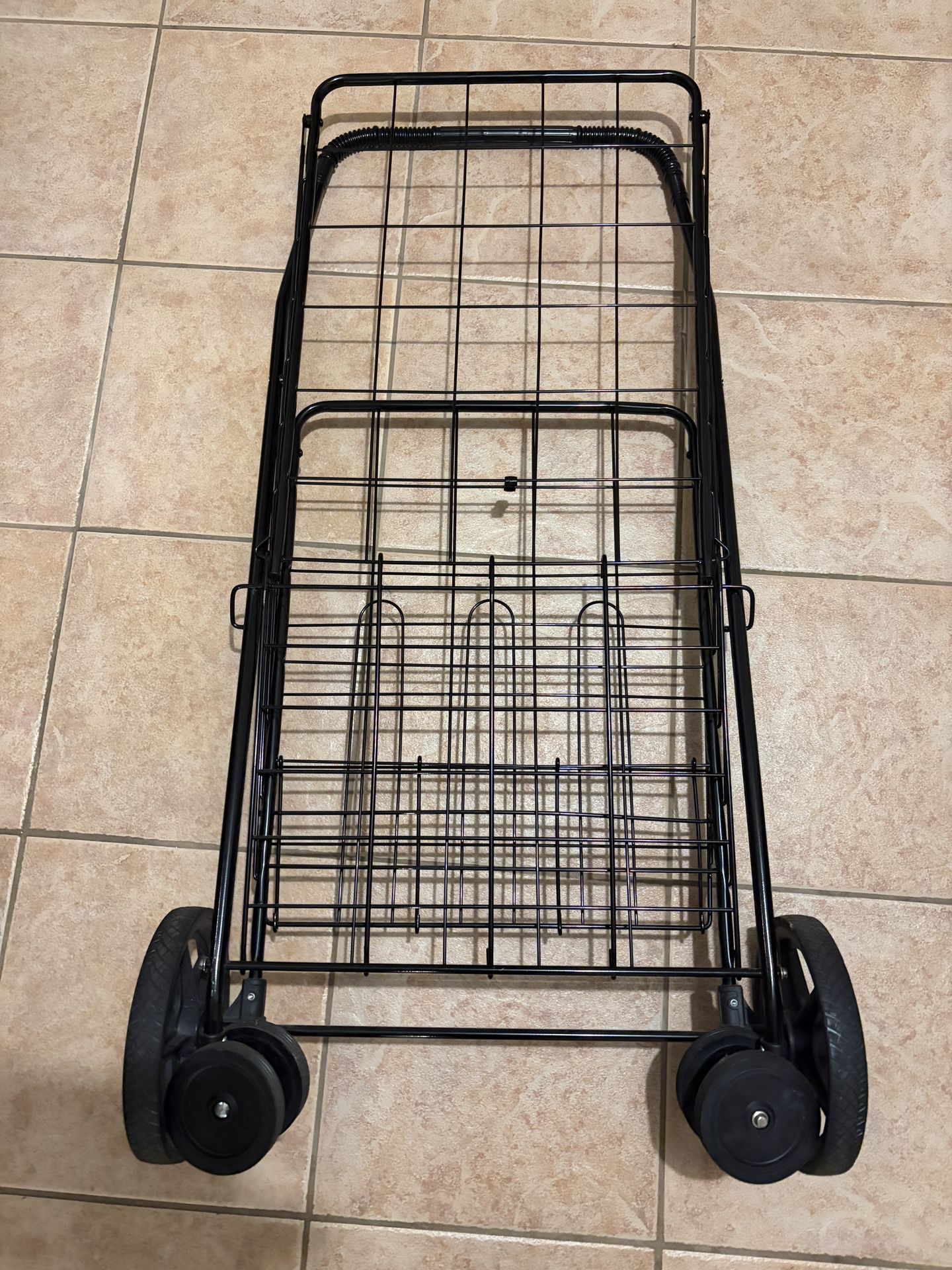 Metal Grocery Cart with Extra Basket, 360° Swiveling Front Wheels & Comfortable Handle, Light Weight Collapsible Utility Cart for Laundry