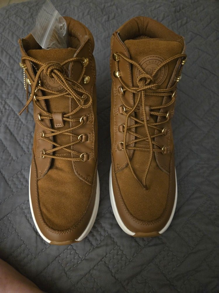 Lauren Ralph Lauren Rylee Hiker Lace-Up High-Top Leather Sneakers in brown /Cognac color. Size US 8.5, EUR 38.5-39 Genuine brown leather and suede. Brand new. Pet free, smoke free home. π‘ π Fort Lauderdale Please check my other items too. Everything is 100% authentic ποΈ Bundle deals are available, just ask πβΊοΈ