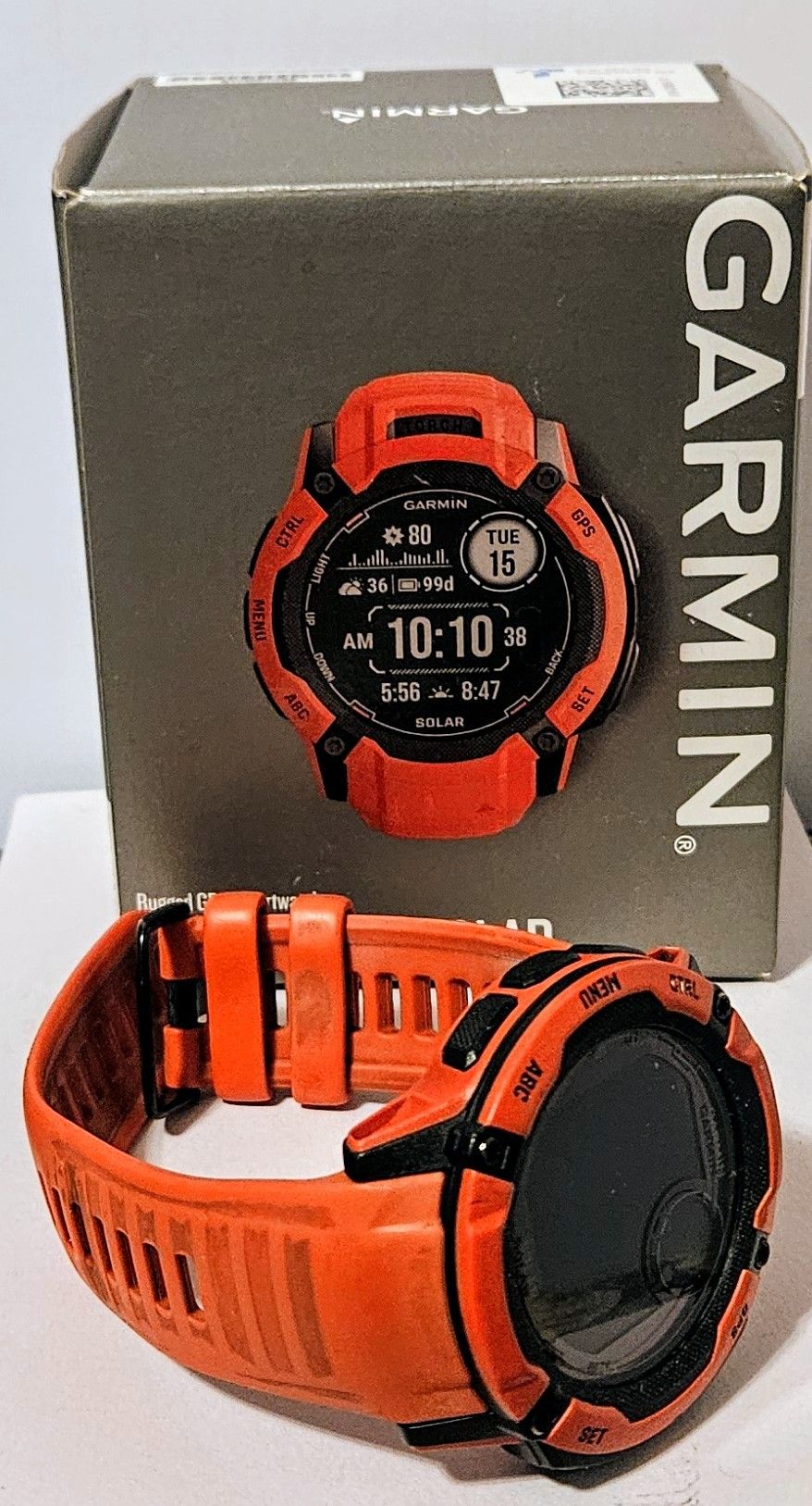 Garmin Instinct 2X Solar rugged GPS smartwatch in excellent working condition. Used for approximately 2 years and well cared for. No issues — everything functions as it should. A screen protector has been on the watch since I bought it. This is the Instinct 2X Solar model, featuring solar charging, built-in LED flashlight, multi-band GPS, and military-grade durability. Features: Solar charging (exceptional battery life) Built-in LED flashlight GPS / GLONASS / Galileo MIL-STD-810 (thermal, shock, water resistance) 100m water resistance Heart rate, Pulse Ox, sleep & fitness tracking Outdoor navigation & multi-sport modes Includes: Watch with original band Garmin charging cable Original Garmin box Manuals / documentation Condition: Screen is protected No cracks Buttons, sensors, and charging contacts work properly Normal cosmetic wear consistent with use