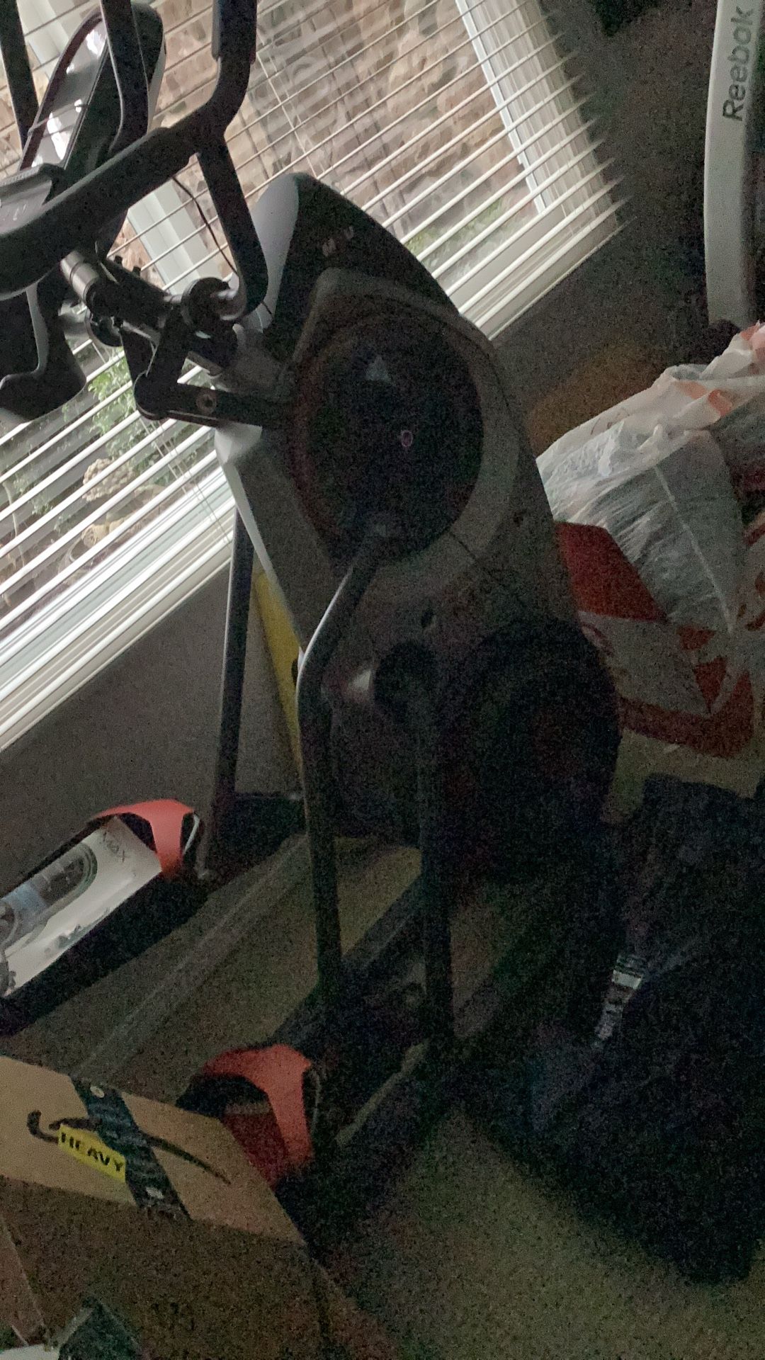 Max trainer m5, Reebok treadmill, side shaper, hand weights and bands.