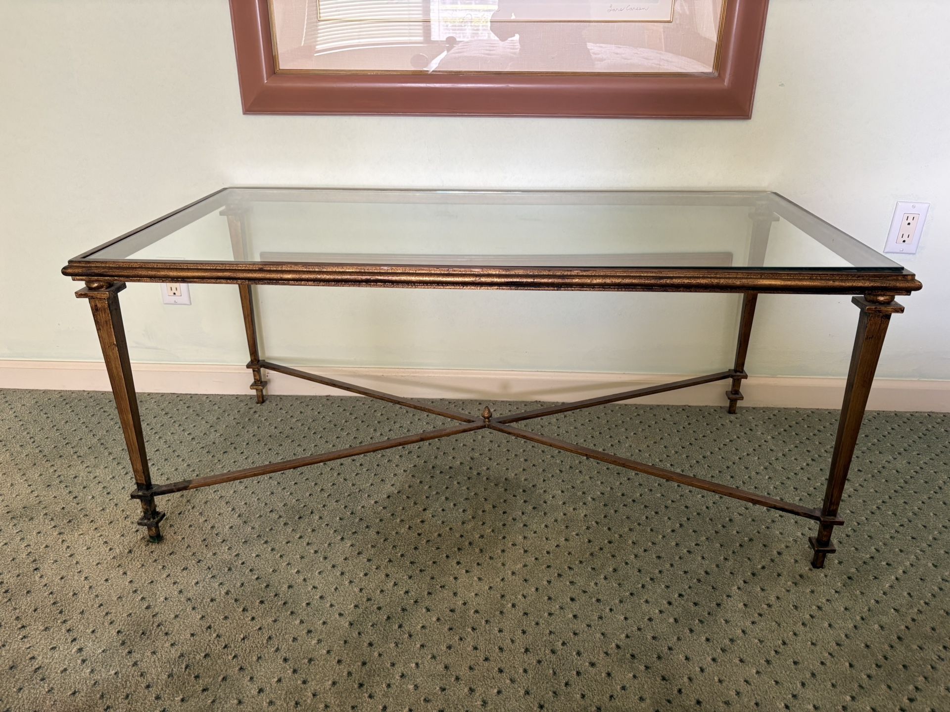 48 X 24 X 21T. High End Rectangular Solid Wrought Iron Metal & Glass Coffee Cocktail Table In Excellent Condition. Now Only $150 Not Negotiable.