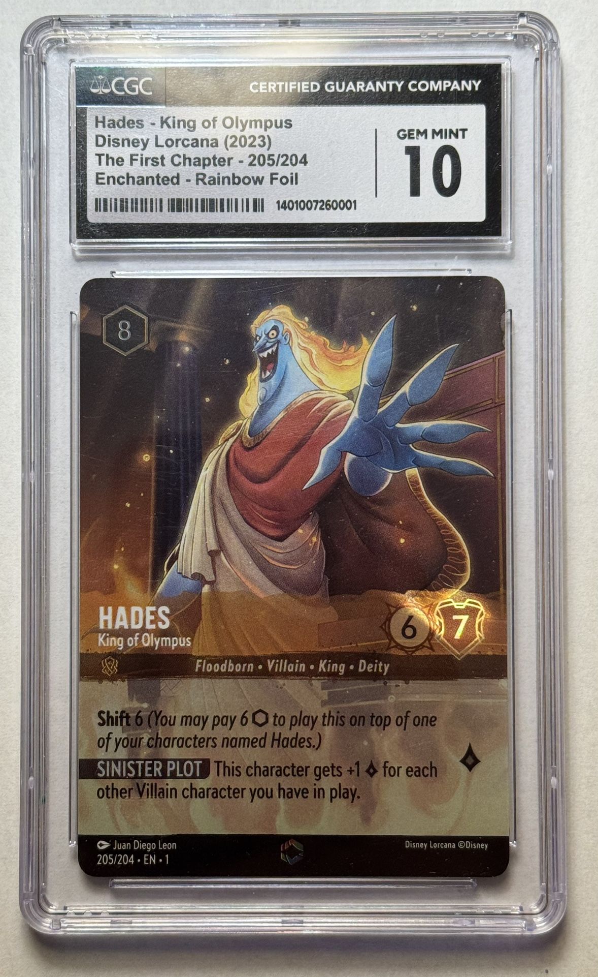 2023 DISNEY LORCANA EN 1-THE FIRST CHAPTER #205 HADES ENCHANTED CGC 10 GEM MINT
